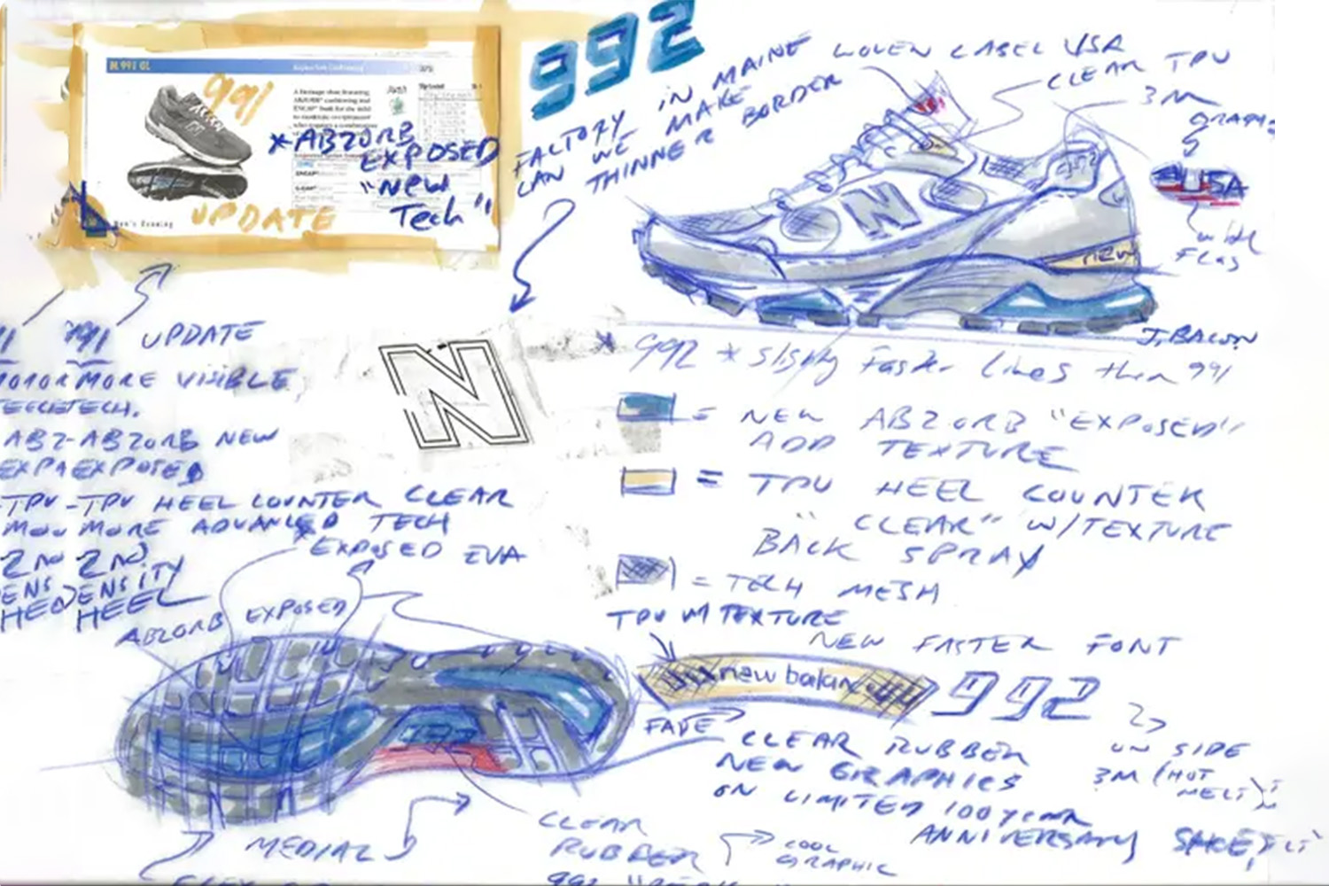 До сторіччя бренду у 2006 році потрібен був особливий продукт, який би гідно доповнював лінійку 99x — ним стали кросівки 992. Існує міф, у якому голова правління New Balance Джим Девіс звернувся до Стіва Джобса, друга і шанувальника бренду, щоб разом створити дизайн нових кросівок. Нинішні працівники компанії не коментують цей зв’язок, а дизайнер New Balance Джонатан Бекон заперечує цю співпрацю, хоча не відхиляє версію, що Джобс міг схвалити остаточний силует.
