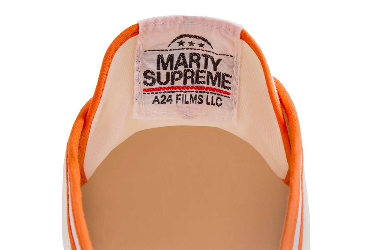 Головною візуальною відмінністю взуття з мерчу для «Марті Супрім» стали кольорові текстильні акценти: в одній з моделей їх виконали у фірмовому помаранчевому кольорі фільму, а в іншій — у червоному та синьому. На язичку також розмістили логотипи «Марті Супрім» та A24, а відправляється взуття в кастомізованій помаранчевій чи синій коробках.