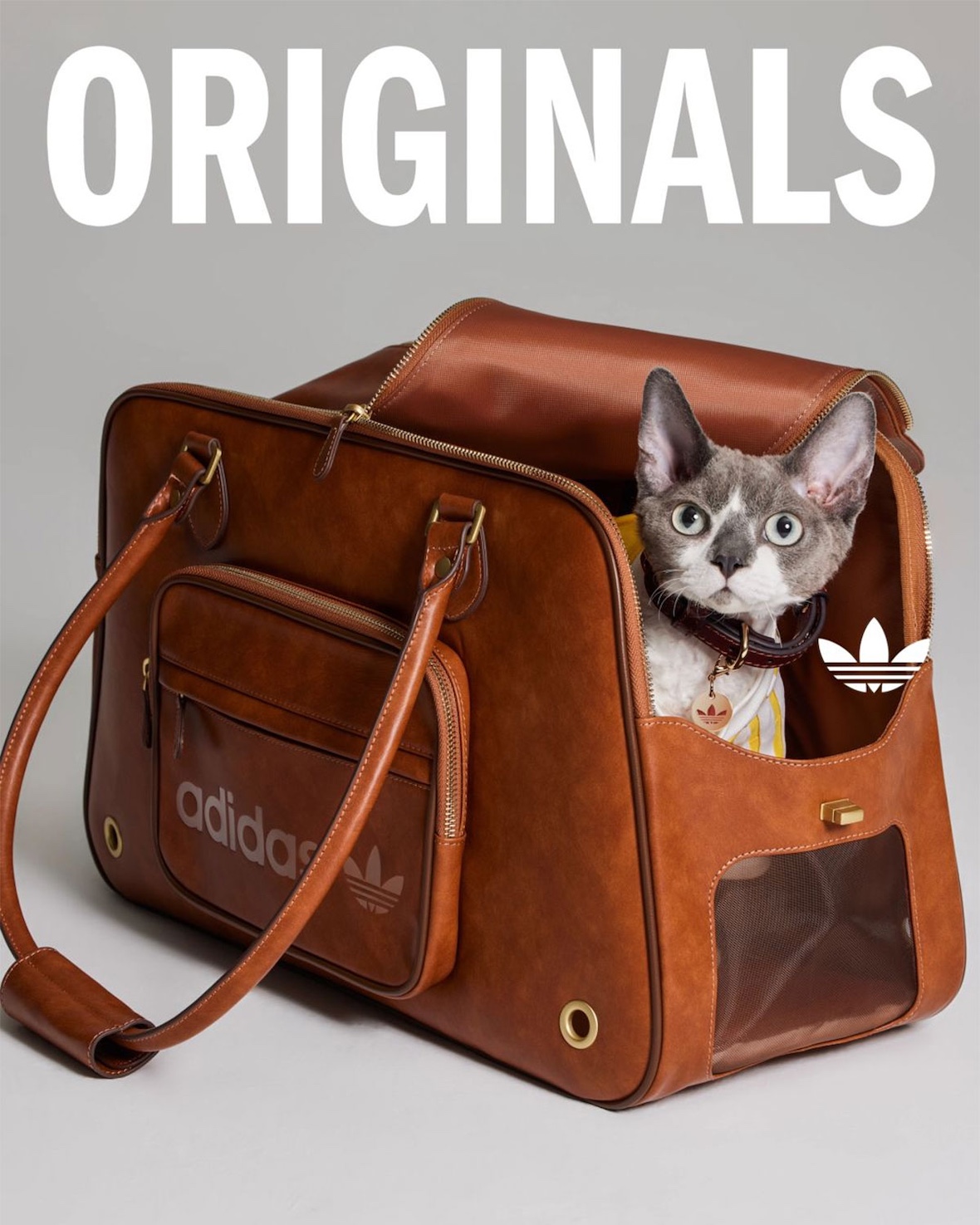 Завершили колекцію акцентною шкіряною переноскою із сітчастими «вікнами» для вентиляції. Окрім основного відділення, сумка отримала дві додаткові бічні кишені для спорядження тварини та інших необхідних речей. Мінімалістичні сумки виконали у коричневому та чорному кольорах та доповнили брендингом adidas на одній з кишень.