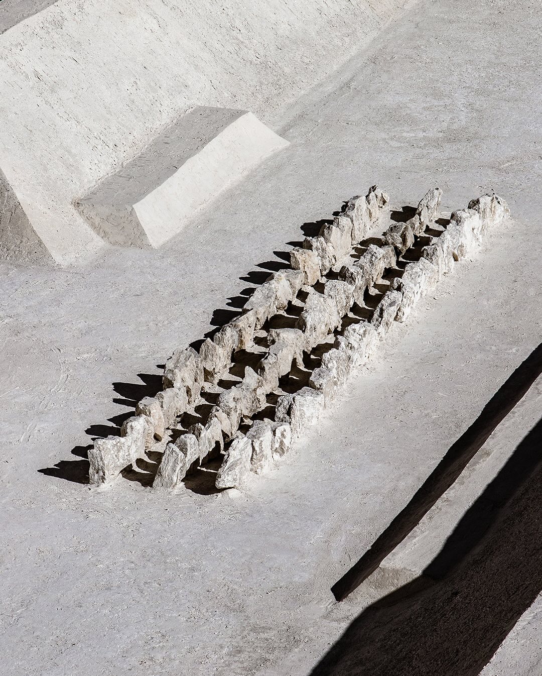 У будівництві команда проєкту використовувала лише наявні на місці матеріали — стіни, лавки, місце для вогнища та саму доріжку виготовили з гіпсу, a після завершення івенту його можна використати у виробництві.