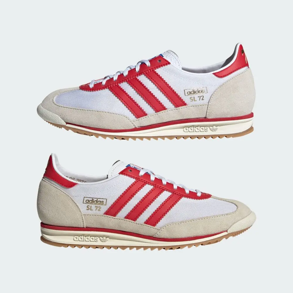 Модель SL 72, яку бренд повернув цього року, у колекції до 75-річчя представили в червоно-білому колорвеї. Верх пари виготовлений з нейлону, з замшевими вставками на п’ятці, носку та збоку. Його також доповнили шкіряним задником та смужками збоку.