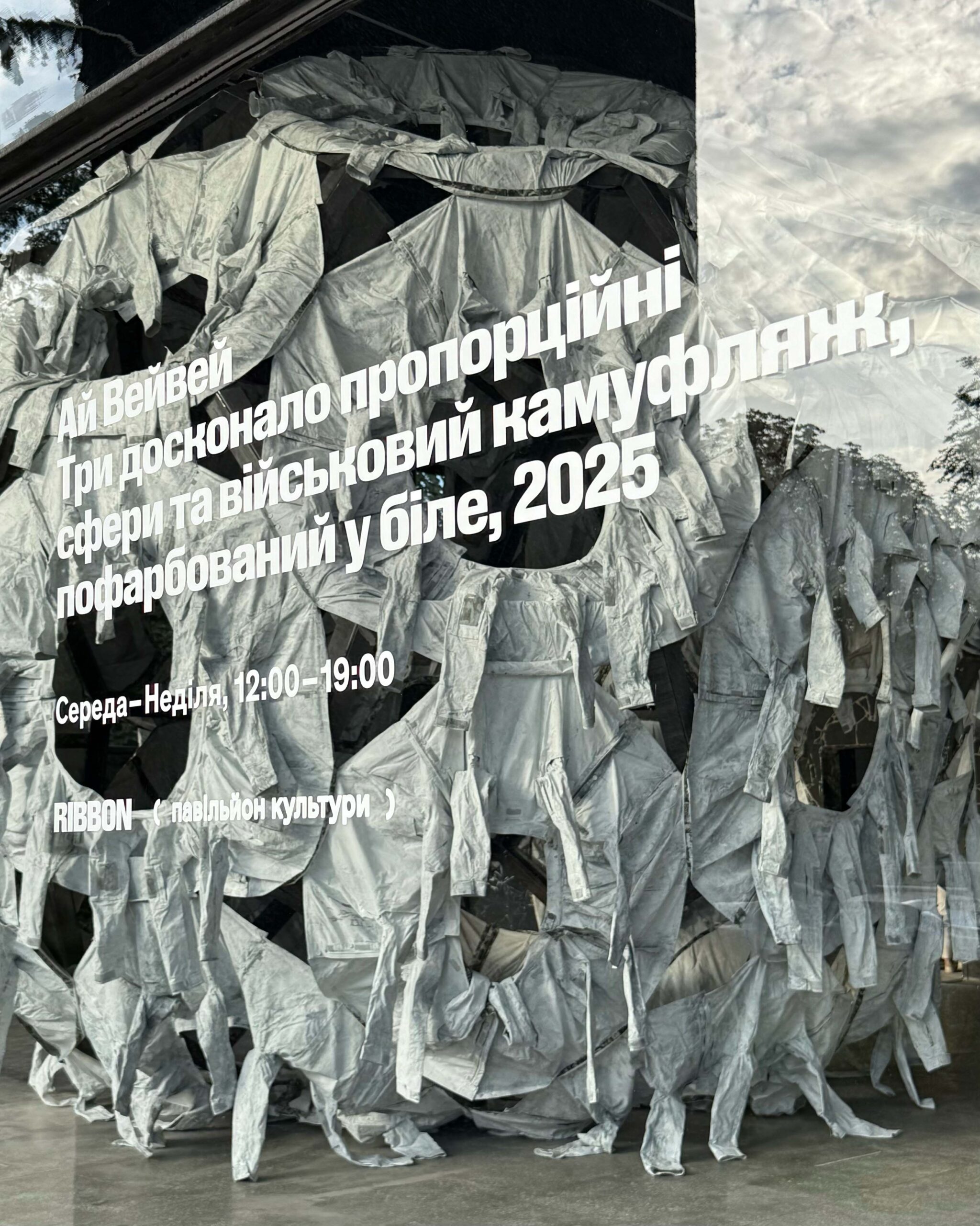 Інсталяцію «Три ідеально пропорційні сфери та камуфляжна форма, пофарбована в білий колір» з 14 вересня можна побачити «Павільйоні Культури» на ВДНГ