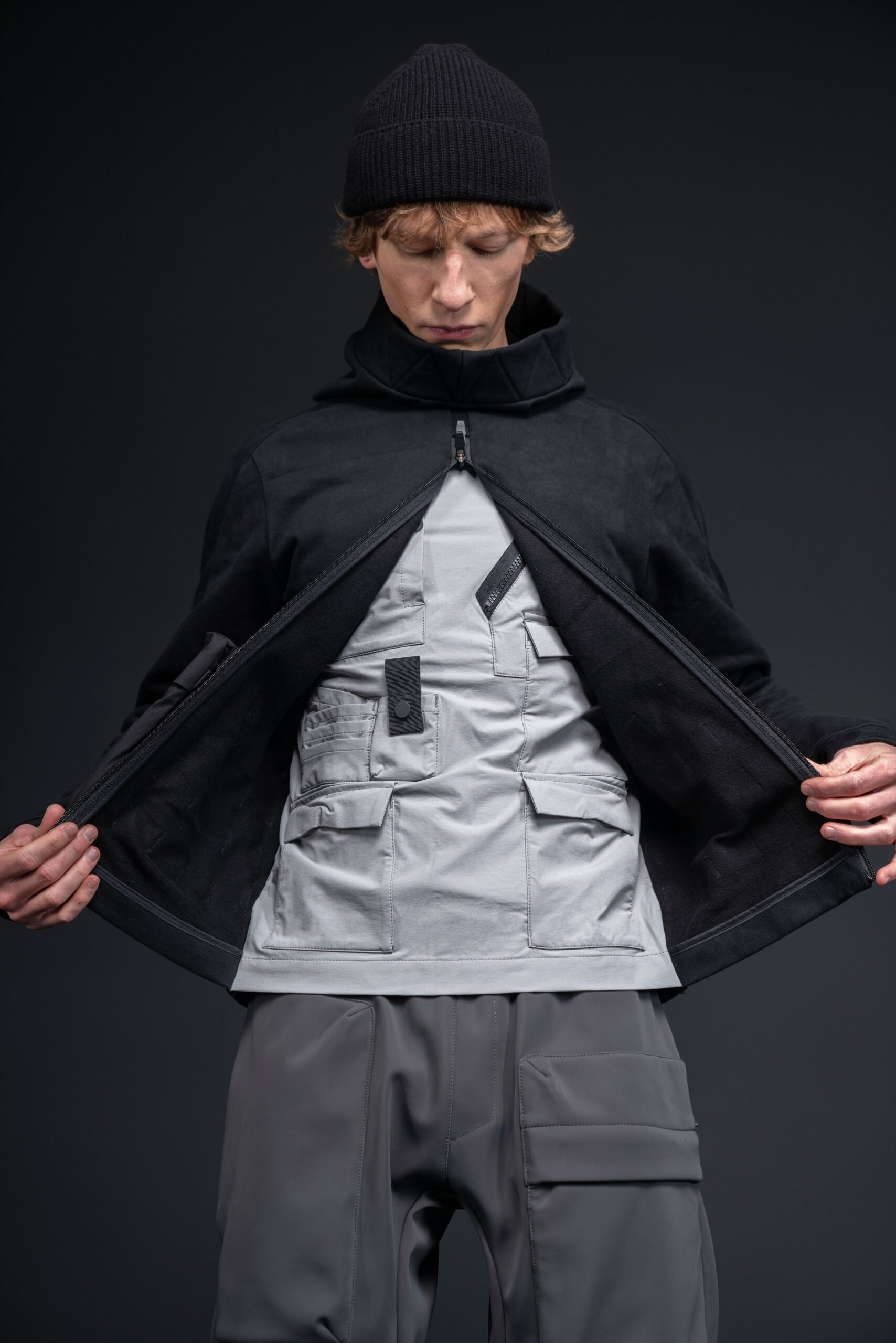 — Є таке. Мені подобається трансформація речей, щось приховане, як-от додаткові шви й конструктивні вирішення для зручності функціоналу. Тобто робити так, щоб, на перший погляд, це була звичайна куртка, а коли починаєш дивитися глибше, то обов’язково знайдеш кишені або вставлений для зручності стрейчевий матеріал.