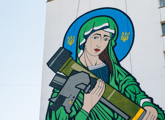У Києві створили мурал «Свята Джавеліна». Через декілька годин на ньому замалювали німб