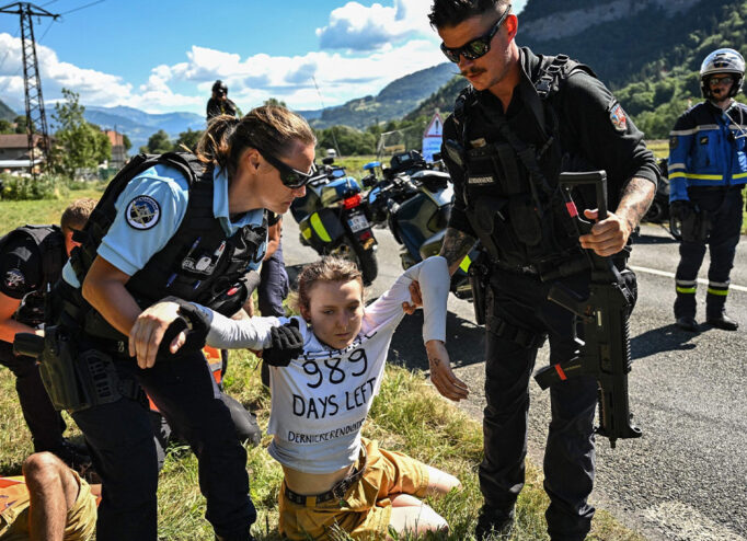 Екоактивісти перервали етап велогонки «Тур де Франс». Вони приклеїли себе до асфальту