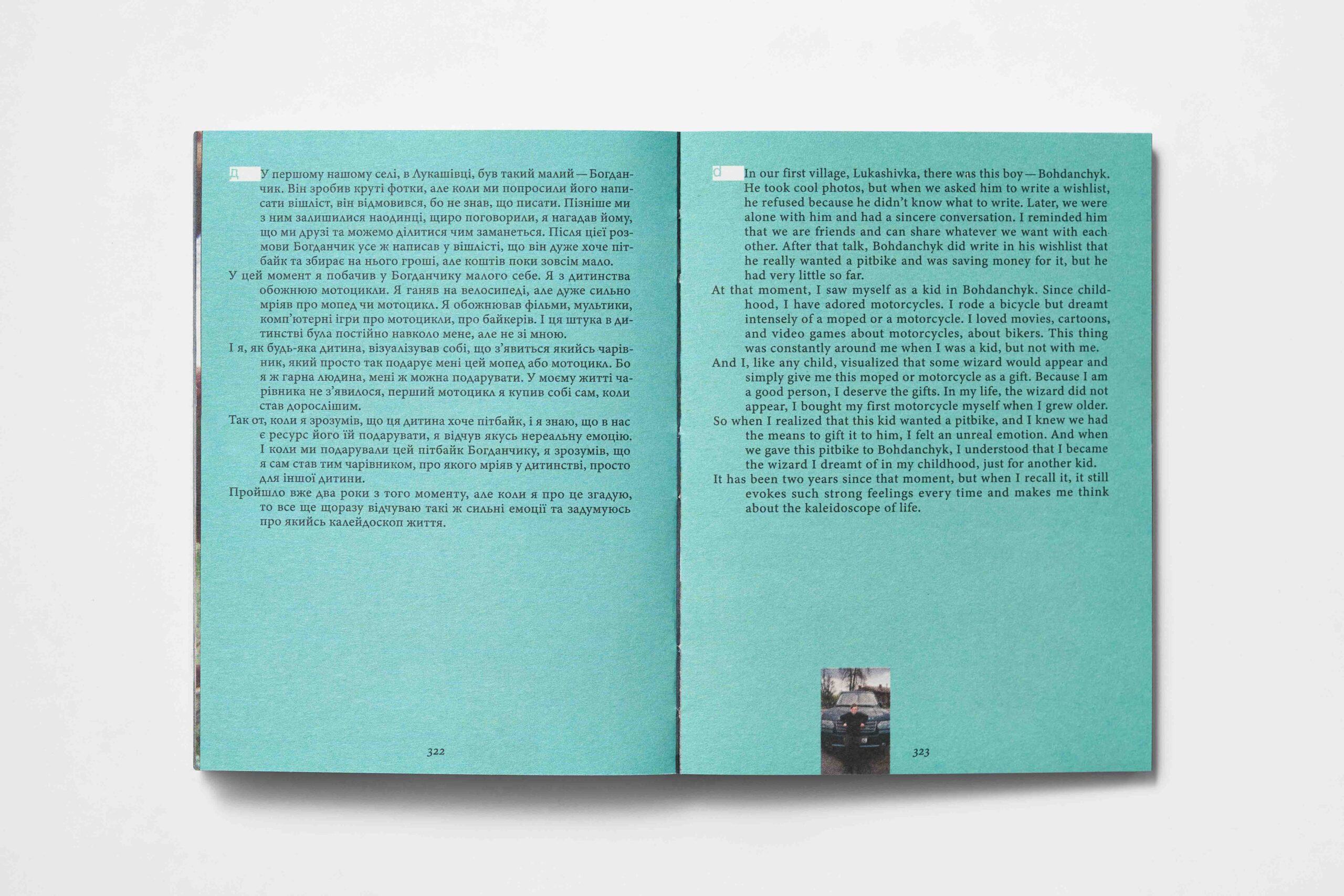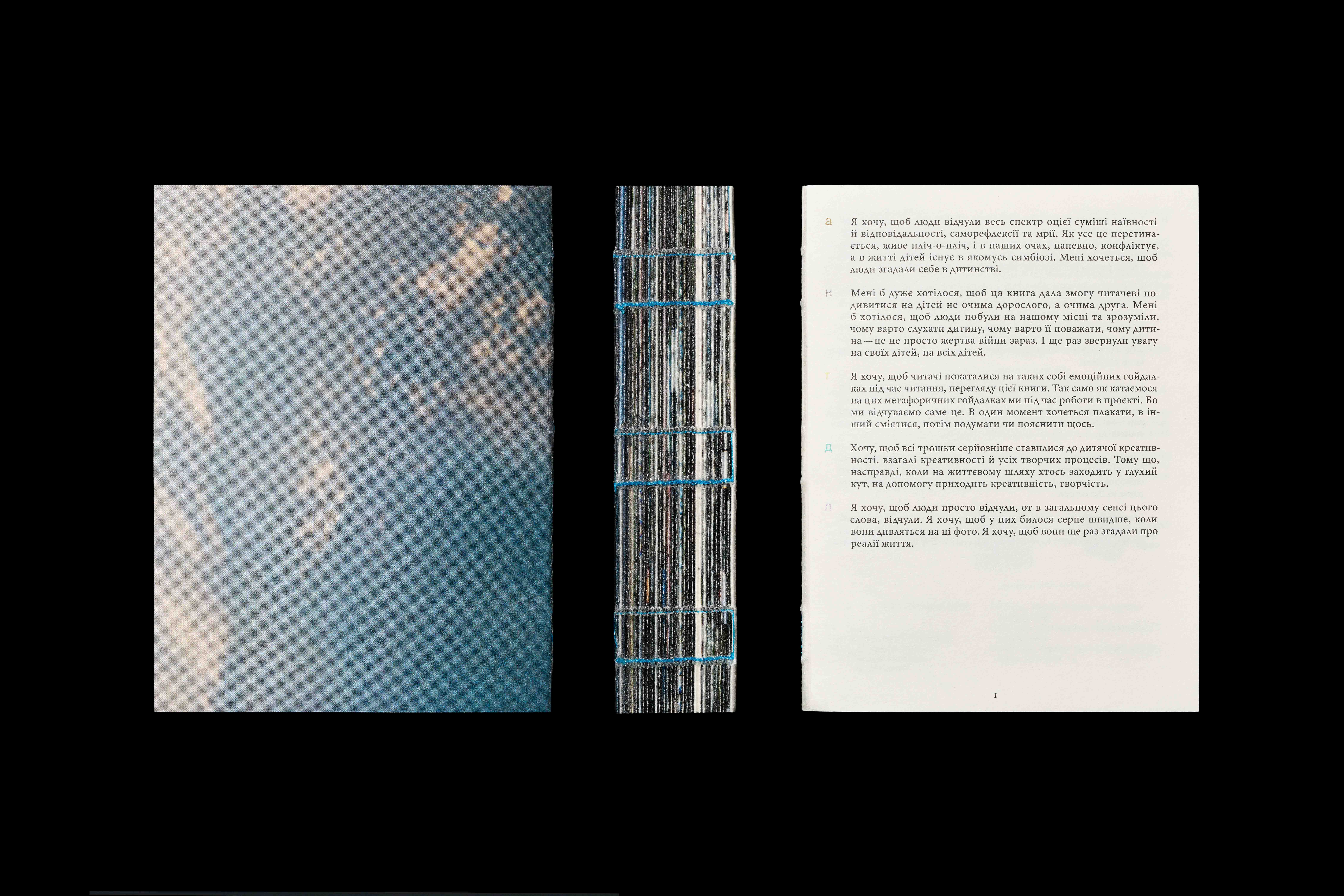 «Формат та оформлення книги — символічні. Вона кишенькового розміру, зручно лежить в руці дорослого і, таким чином, створює відчуття мініатюрності та причетності до чогось крихітного, дитячого, — пояснюють задум у Behind Blue Eyes. — Щоб дистанціюватися від концепції “фотокниги“ чи “архіву“ та не навʼязувати “дорослі“ формальності, книга має відкритий корінець та зшиток паперових сторінок, перша з яких і виконує функцію обкладинки».