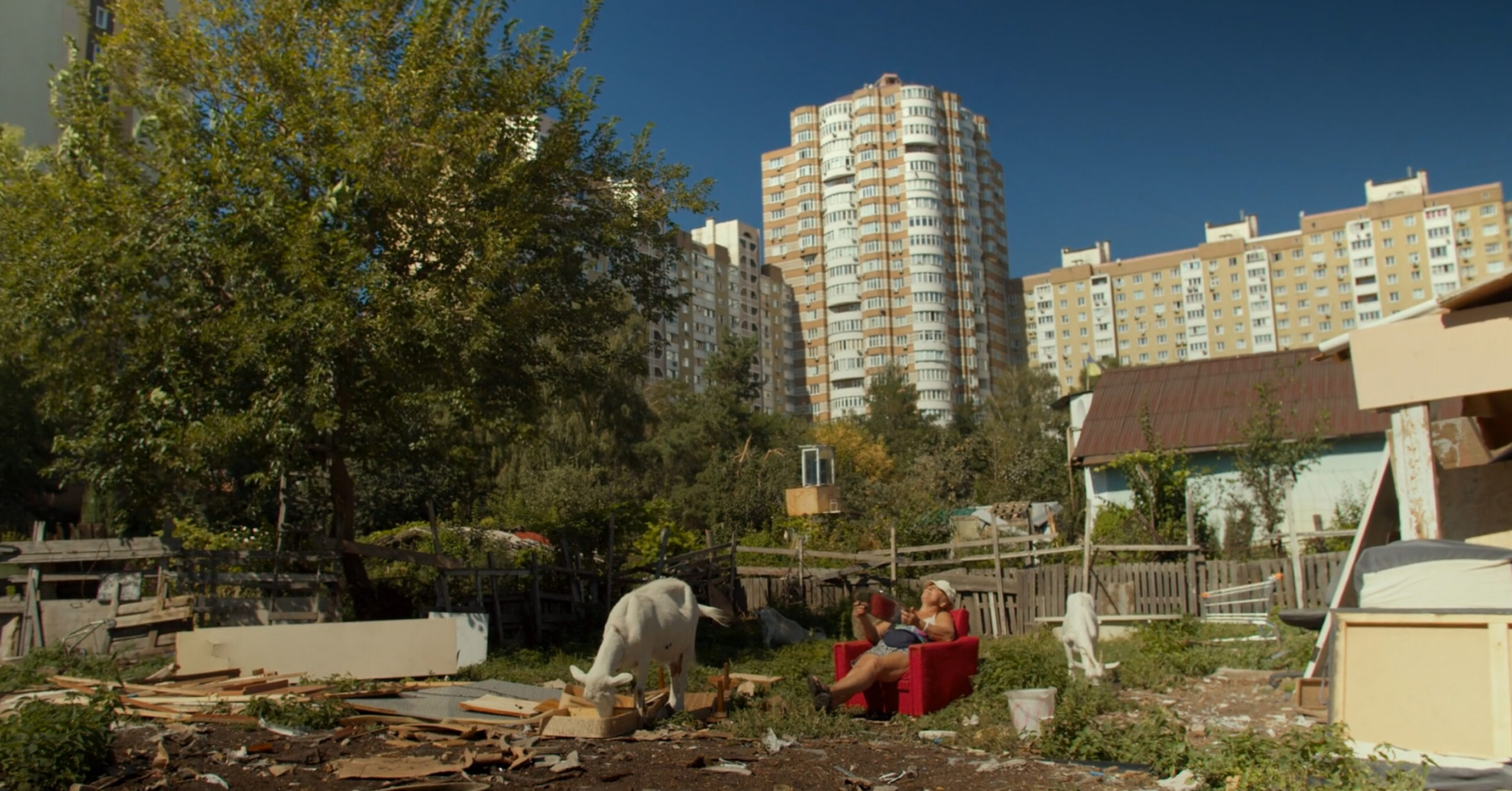 Коли ми знімали на даху «Квітів України», то записували інтерв’ю, спілкувалися з активістами — загалом шукали героїнь для фільму (тоді його концепція ще була трохи іншою: про три покоління — X, Y, Z). Хтось згадав про «яму» на Позняках. Я здивувалась: мої батьки живуть зовсім поруч, а в оператора фільму Богдана Розумного — просто навпроти! Ми поїхали туди, і першими побачили кіз. Пішли за ними — і вони буквально привели нас додому. Так ми й познайомилися з Наталією.