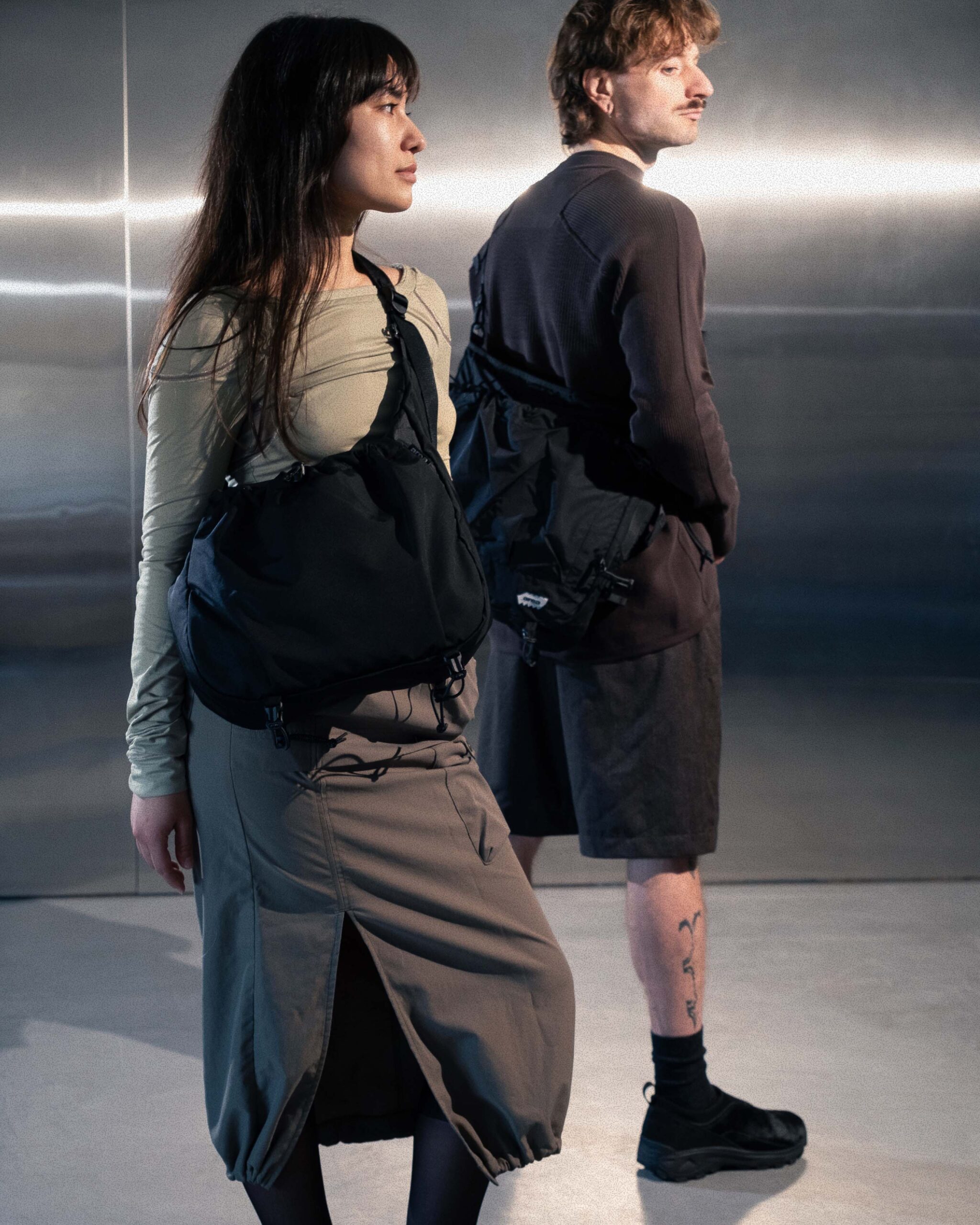 Перший дроп бренду вийшов у жовтні 2024 року — це дві моделі функціональних аксесуарів, створених з використанням техніки ручного фарбування. Докладніше про них ми розповідали в нашому матеріалі.