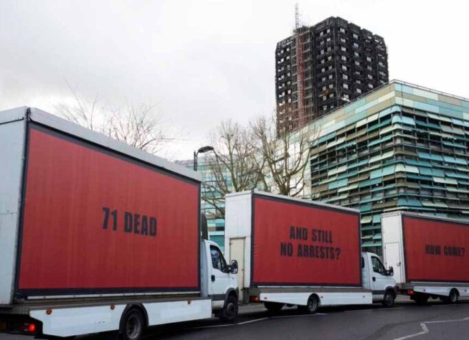 Как в кино: В Лондоне появились три билборда возле сгоревшего Grenfell Tower