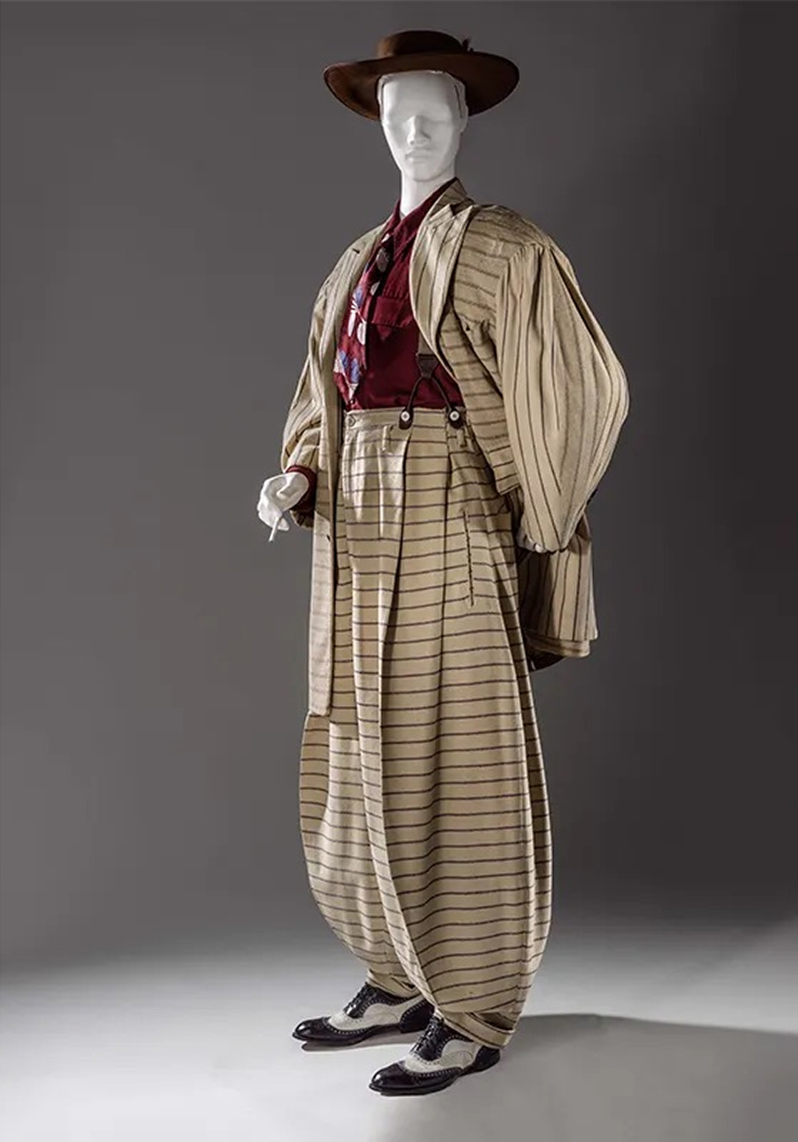 «Через нормування тканини під час Другої світової війни володіння костюмом, що вирізнявся надмірним використанням матеріалу, саме по собі було актом протесту, — пояснює Джонатан Сквер. — Але водночас це була форма захисту. Одяг, який закривав тіло, ніби промовляв: „Це не для вас. Ви не маєте до цього доступу“».