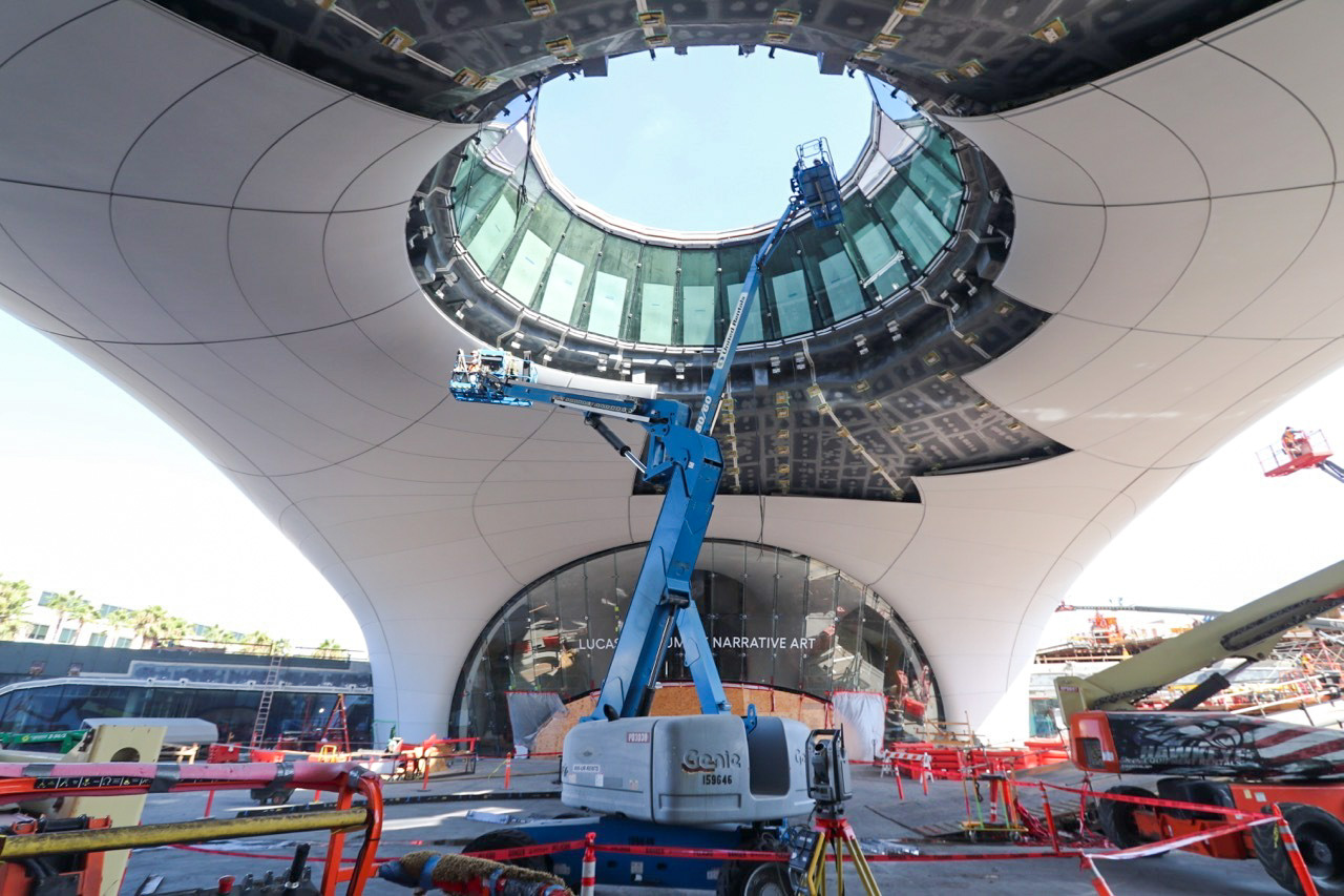 Музей займає 4,4 гектара в Експозиційному парку міста, a площа споруди — понад 27 тисяч квадратних метрів. У Lucas Museum of Narrative Art також немає жодного прямого кута.