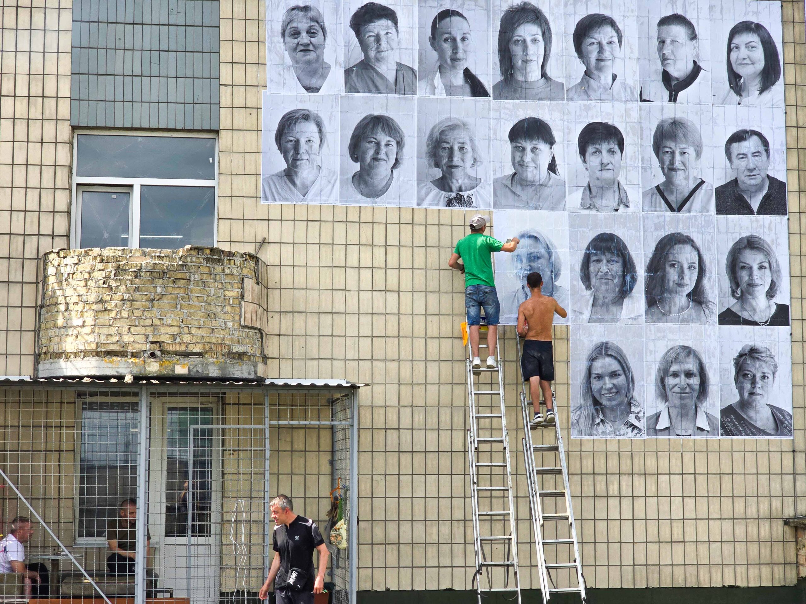 In June 2023, JR’s first solo exhibition in Ukraine opened at the PinchukArtCentre in Kyiv. Besides a series of his lithographs, the art center also presented the Inside Out participatory project called Photobooth: Inside Out Kyiv: We are here.