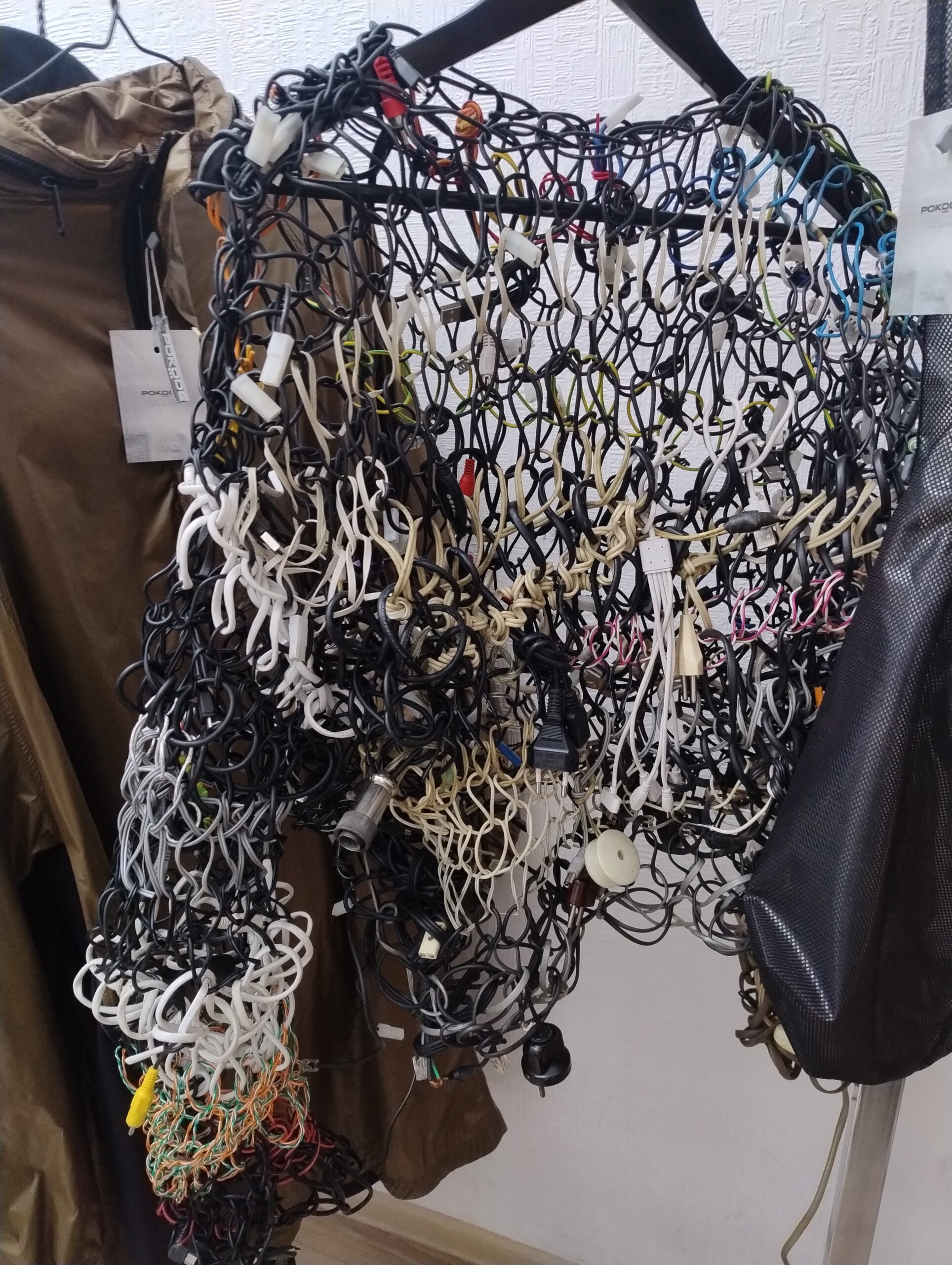 ‘I wanted to show how I reuse the material, — she continues. — The neighbors were going to throw away these wires, but my team and I collected them and created this wonderful sweater’. At the same time, the brand is positioning it as ‘an art piece that they don’t plan to release all the time’.