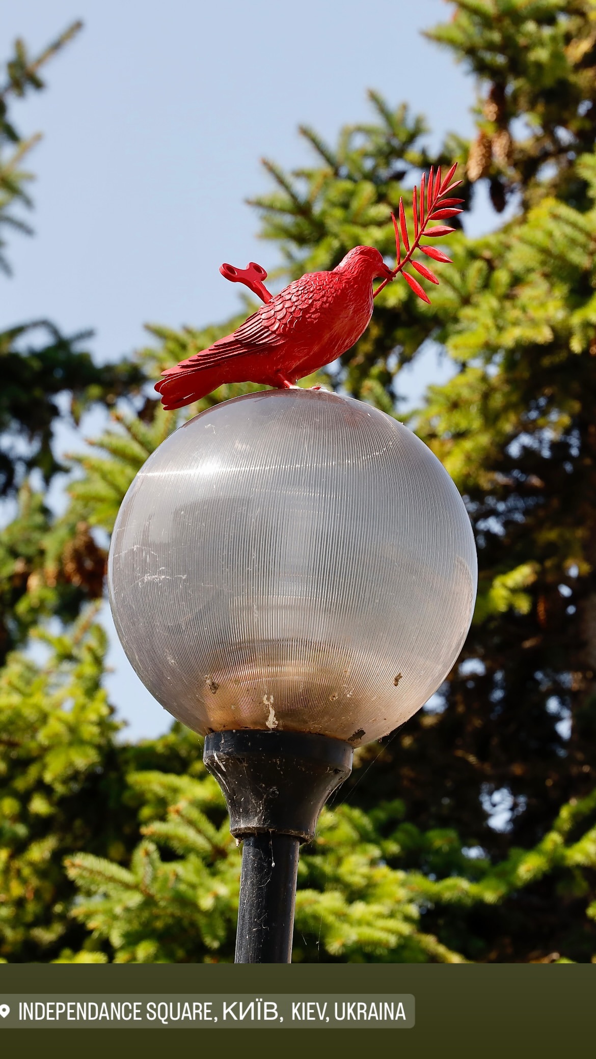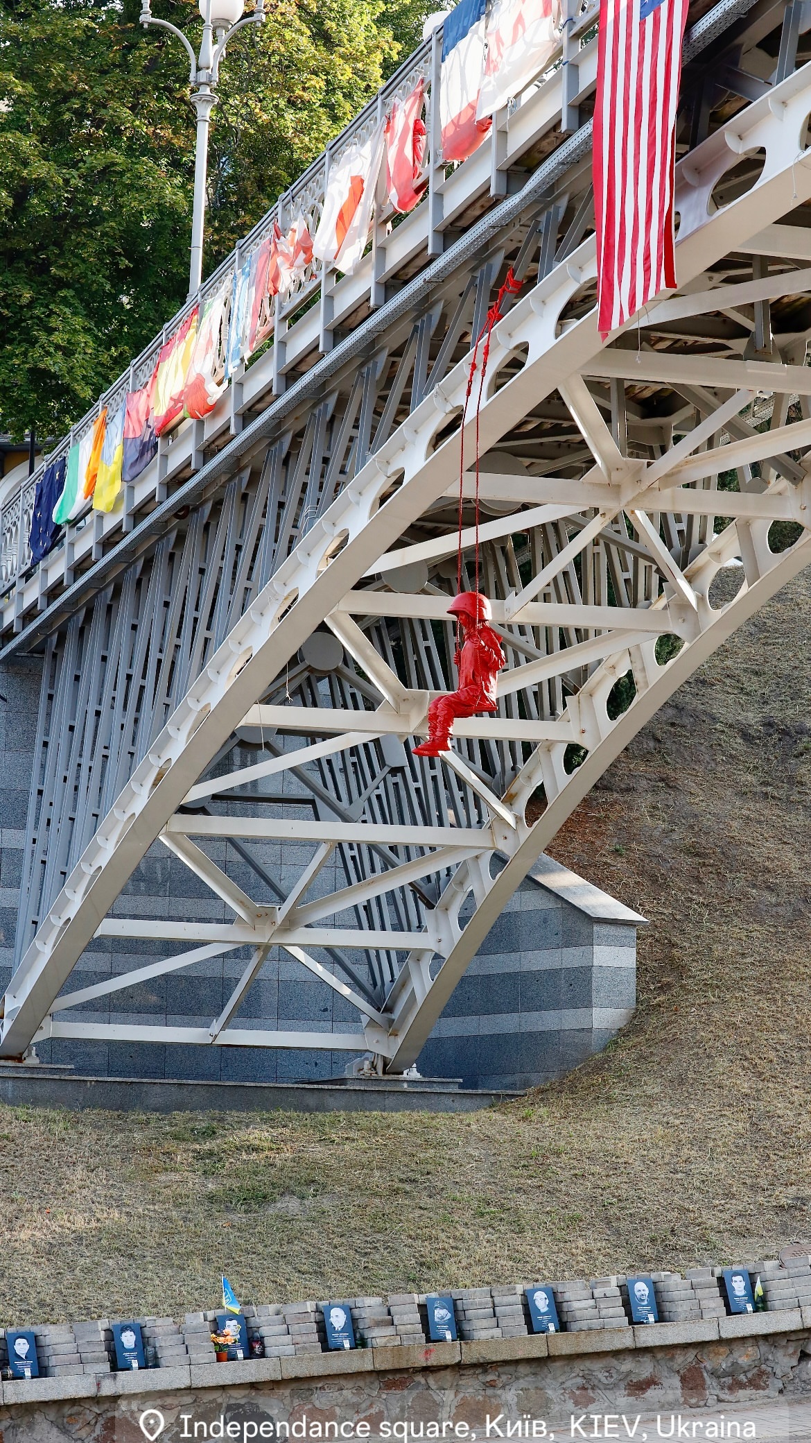 UPD [26.08.2024] James Colomina showed two more works he created in Kyiv for the Independence Day of Ukraine. One of them was placed on Taras Shevchenko Boulevard, and the second — on Maidan Nezalezhnosti, on the bridge above the Heavenly Hundred Heroes Alley.