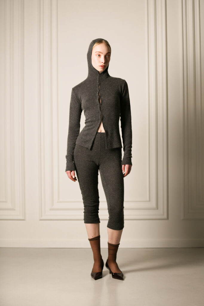 ‘I love the Y2K aesthetic, both objectively and on a personal level, and I don’t rule out that it could be a nostalgic jolt. I want women to wear capris: it’s comfortable, nice and interesting’, Kateryna explained the choice of silhouettes and added that men, for example, can also wear them with wide-leg pants or an oversize T-shirt with a hoodie.