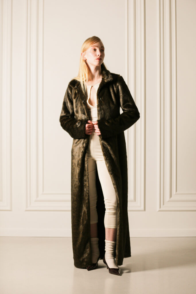 In addition to natural materials, U SO NICE also uses artificial ones. For example, the straight-cut pants are made of faux leather and the long coat is made of faux fur.