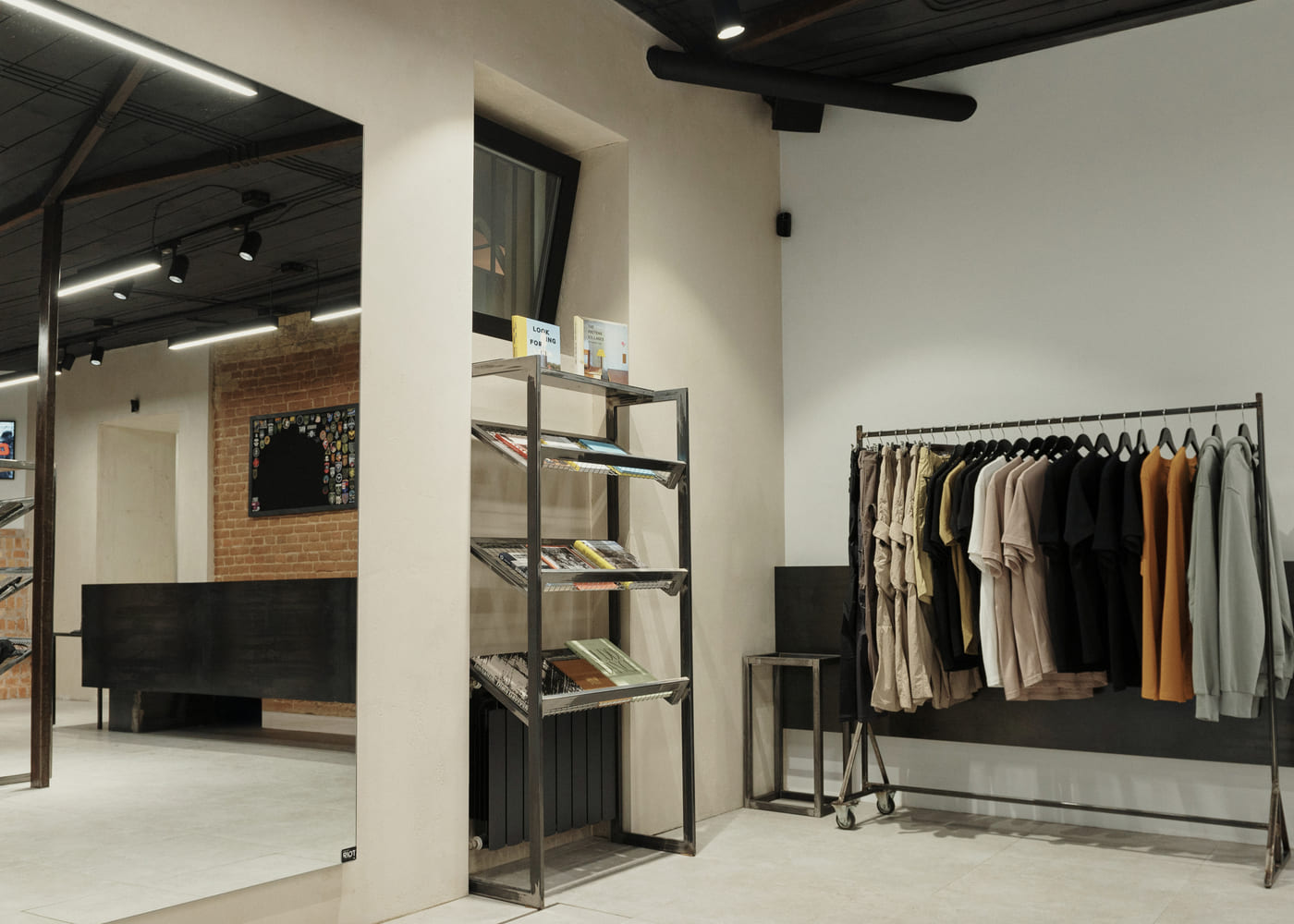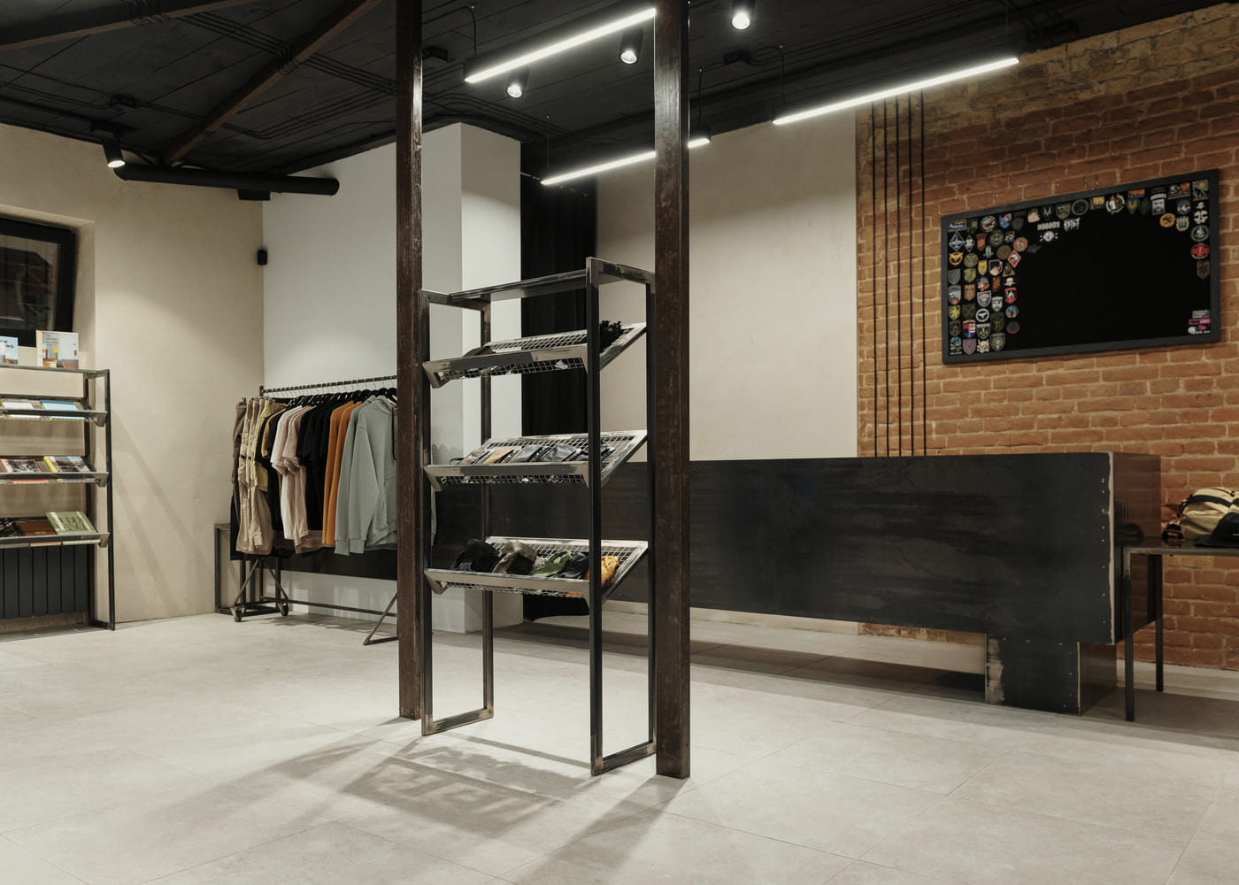 In a commentary for DTF Magazine, RIOTDIVISION said they decided to undertake a complete redesign of the space because ‘everything has its expiration date and there was a need to make changes to the old design’. They made not only visual changes, but also functional ones: they removed storage areas to maximize space for shoppers and clothing, added lighting and replaced a door.