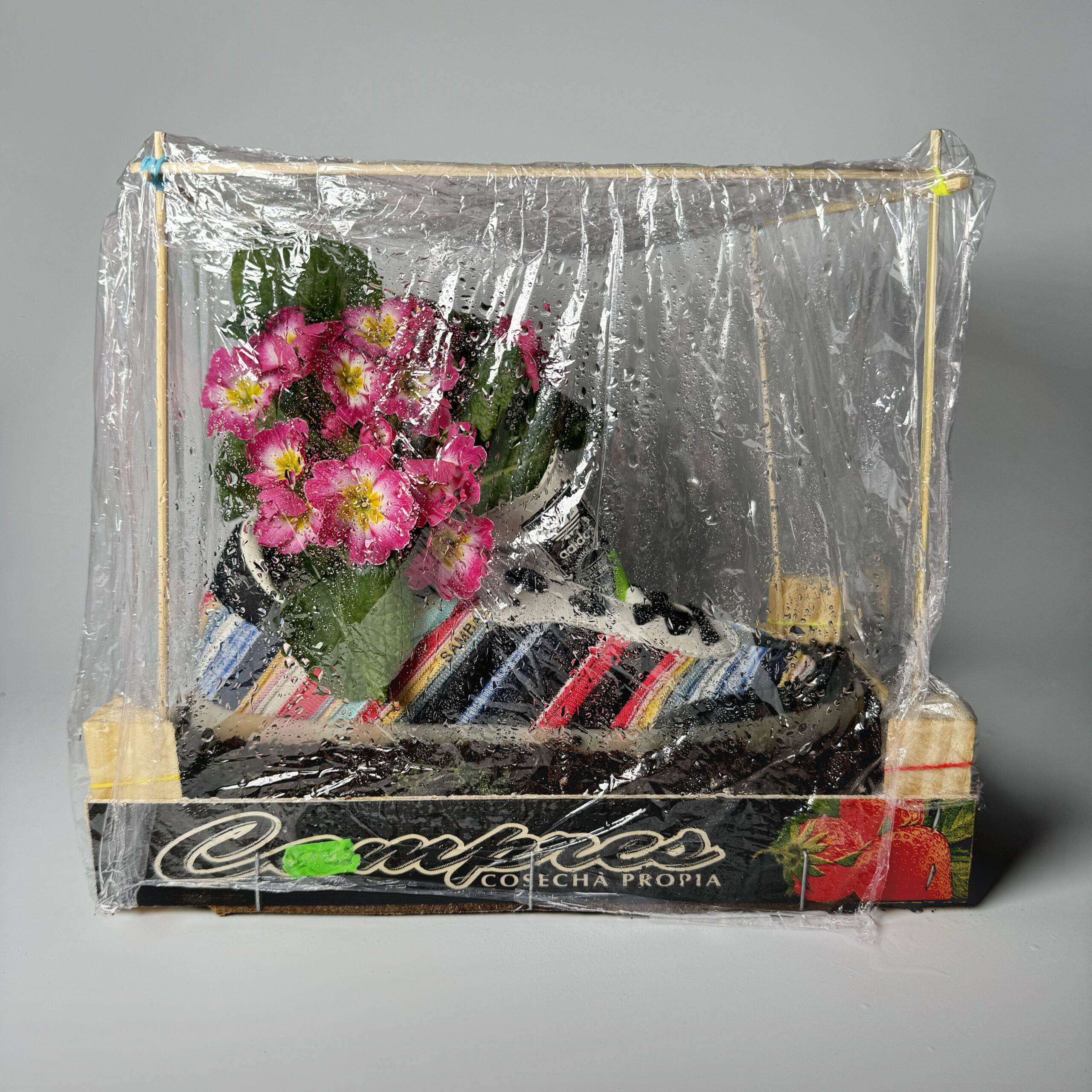 Floweirdy photographed the Samba 2.0 sneakers with a striped upper in patchwork style with a bouquet of flowers and radishes. In other photos, the shoes are hidden in a mini greenhouse made of strawberry boxes, which, as noted in the press release, can often be found on the balconies of Ukrainians.