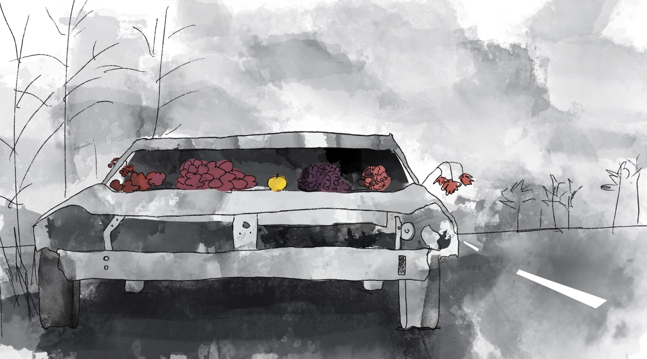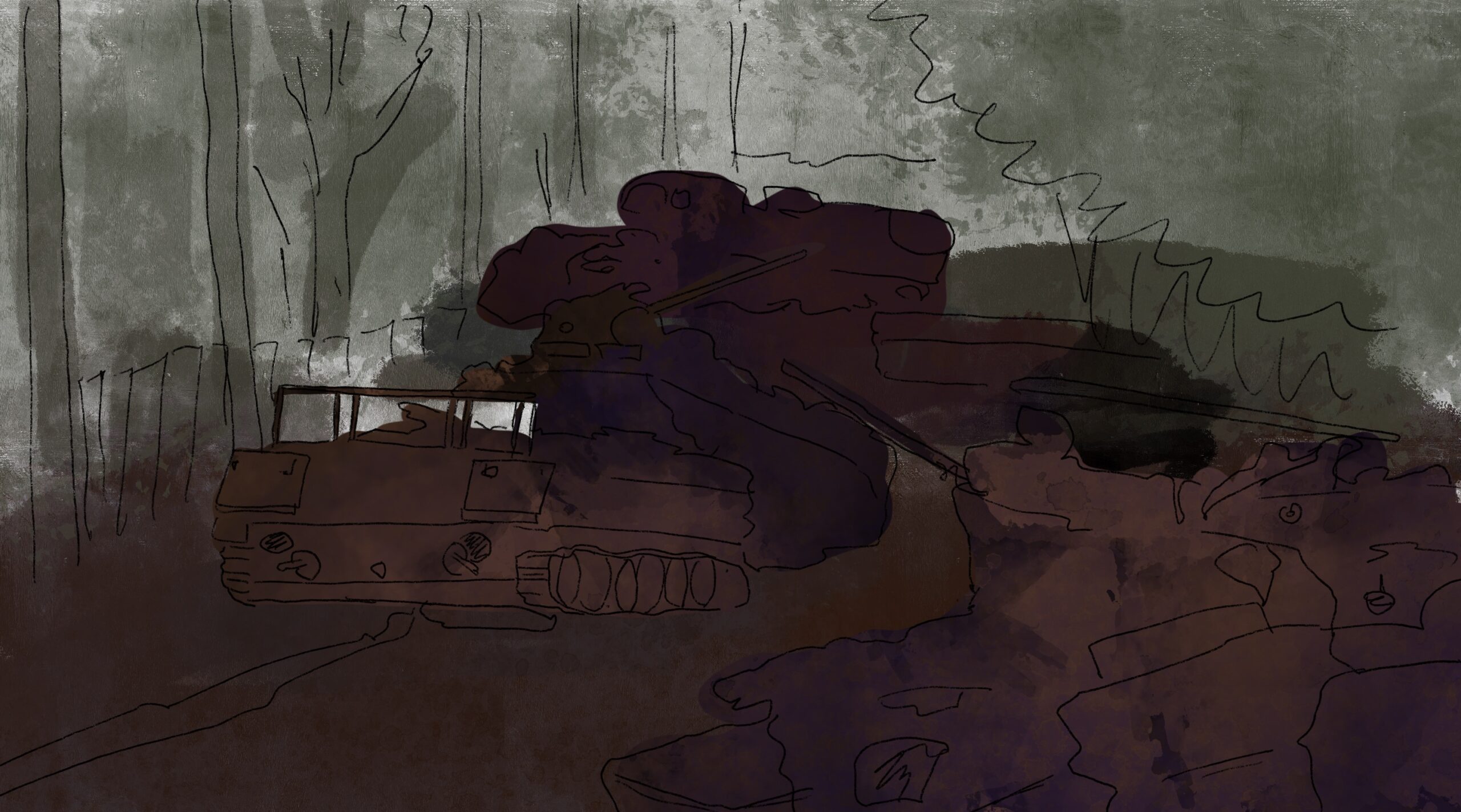 «Кам’янка і її околиці — це велике кладовище, якщо метафорично висловлюватися. Там довкола незлічена кількість загиблих, можливо, ще й досі незнайдених, — каже Володимир. — Вздовж траси є один бронетранспортер, у якому загинули наші хлопці, до якого приїжджали їхні побратими, поклали туди квіти і прапор. Туди також приходять кілька місцевих жителів, героїв нашого відео, віддають шану цим хлопцям, адже вони жили тут у перший місяць ведення боїв».