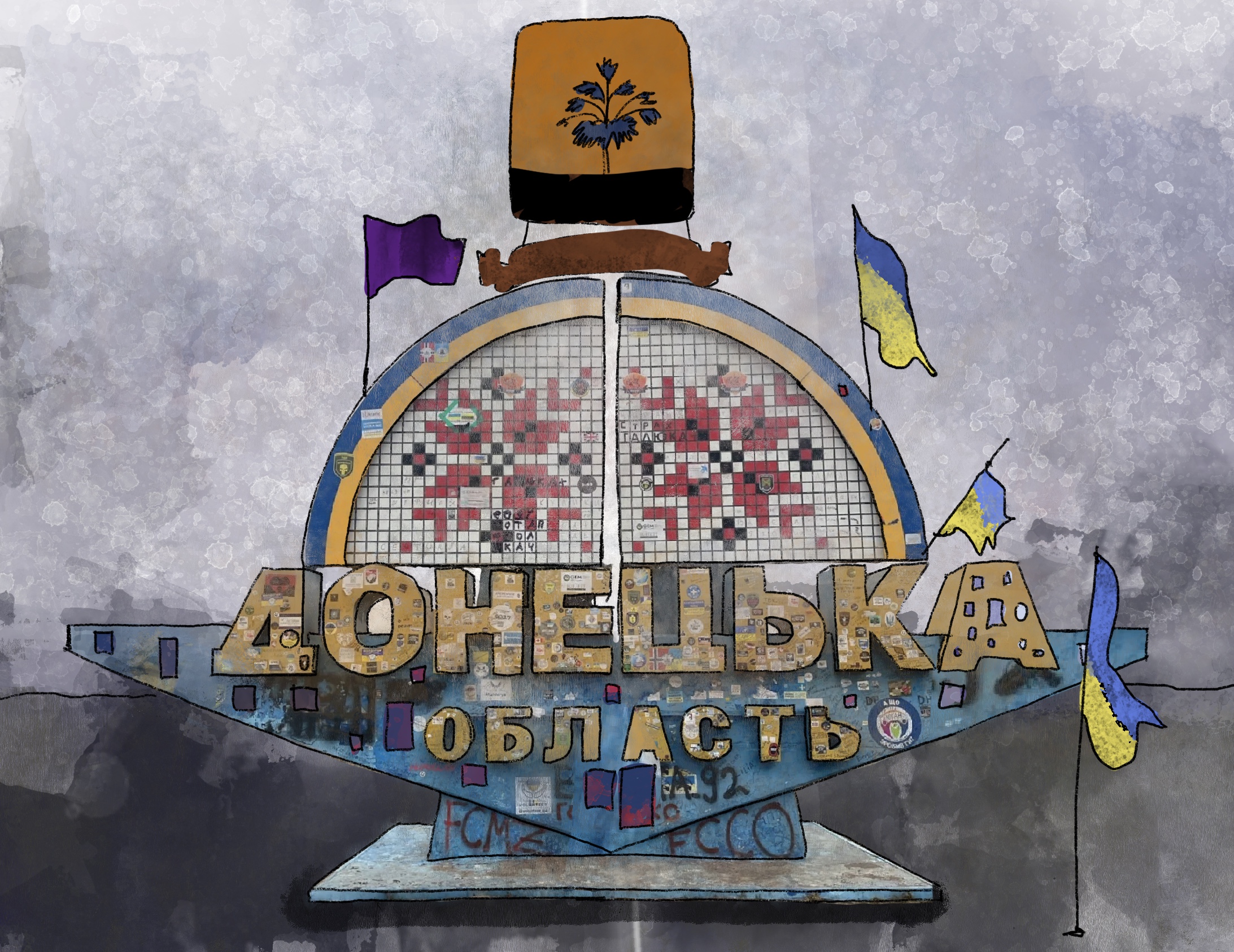 Траса від Кам’янки до Слов’янська утикана прапорами, що уособлюють загиблих військових. «Там десятки прапорів і таких символічних, хаотичних меморіалів, які не мають ніякої систематизації, — каже він. — Вони такі стихійні, еклектичні».