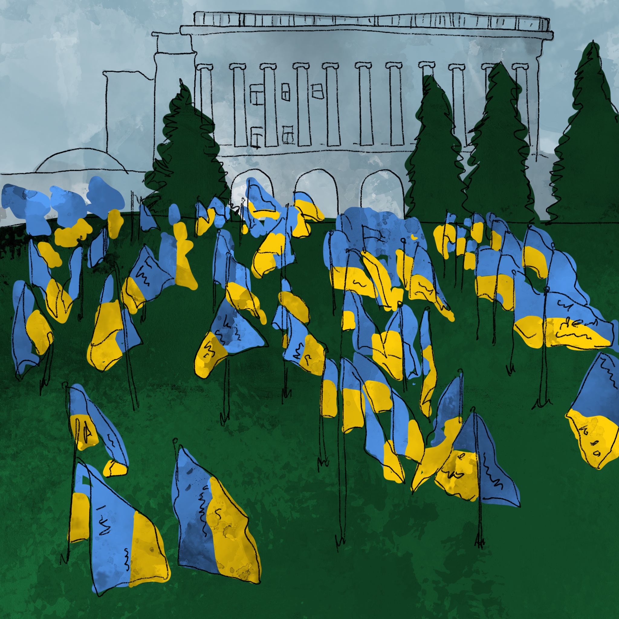 За три роки повномасштабної війни меморіал на майдані Незалежності змінився і розширився. Навесні 2022 року там було пару десятків прапорців і лист A4 з підписом «Якщо ви знаєте когось, кого вбив Путін, ви можете купити прапор і розмістити його тут» і стендом, скільки українців убила російська армія.