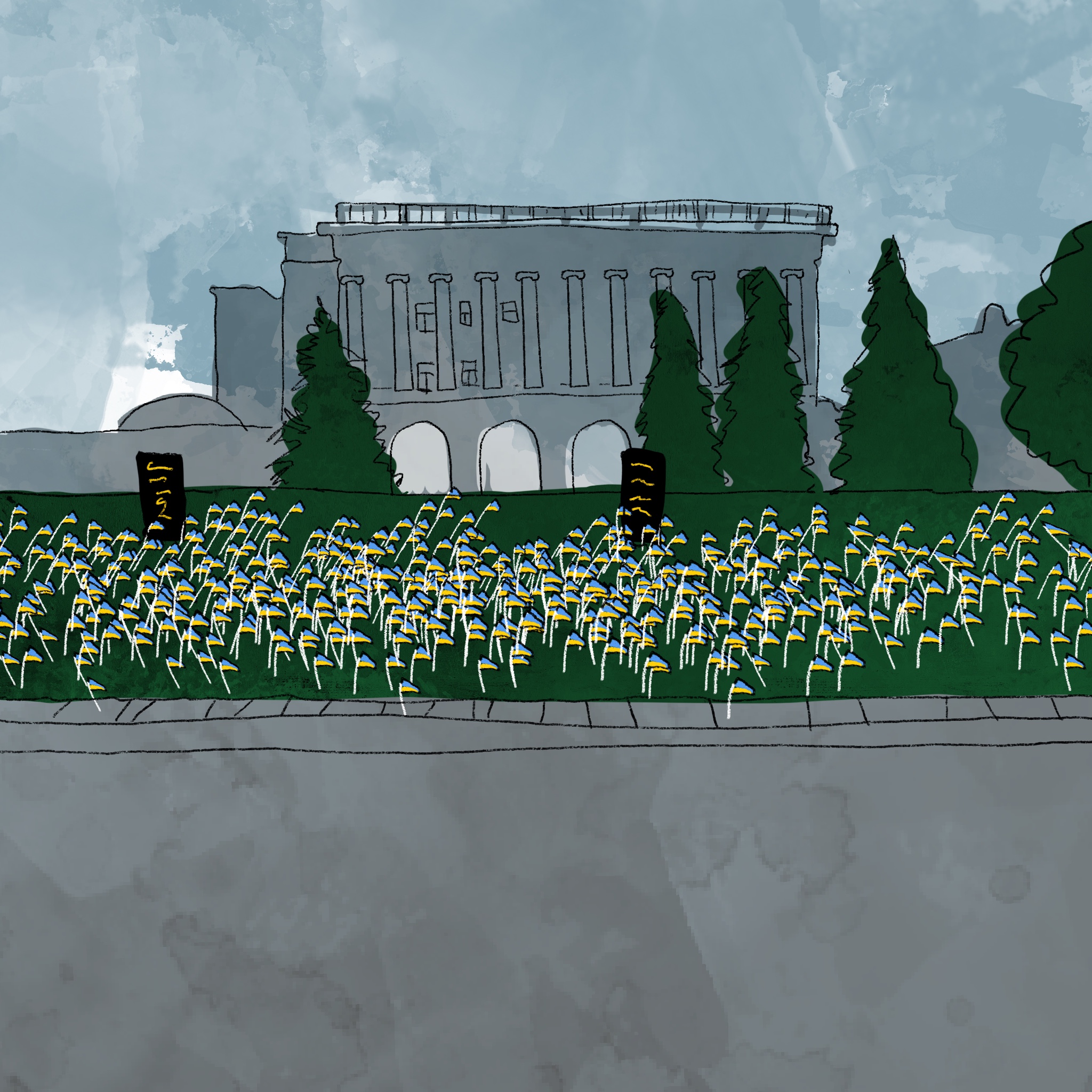 «Вшанування почалося з маленьких українських прапорів, кожен із яких символізував одного загиблого і створював загальний фон рівності подвигу. Їхнє море розповідало про масштаб жертви у цій війні, але і про те, що всі військові є героями, які однаково віддали своє життя за Україну, — ділиться думкою Дарка Гірна. — Але згодом туди почали приносити великі прапори бригад, прапори з великими портретами, фото в різних рамках, окремі бригади почали відкривати свої окремі алеї тощо. Візуально це перетворилося на безлад і символічне змагання: хто важливіший, хто краще вшанує своїх. Ідея рівності, на жаль, нівелювалася. Розумію, що оскільки ми перебуваємо всередині болю і горя, такі речі буде складно врегулювати. Але, можливо, нам варто буде повернутися до цієї початкової ідеї рівності після війни».