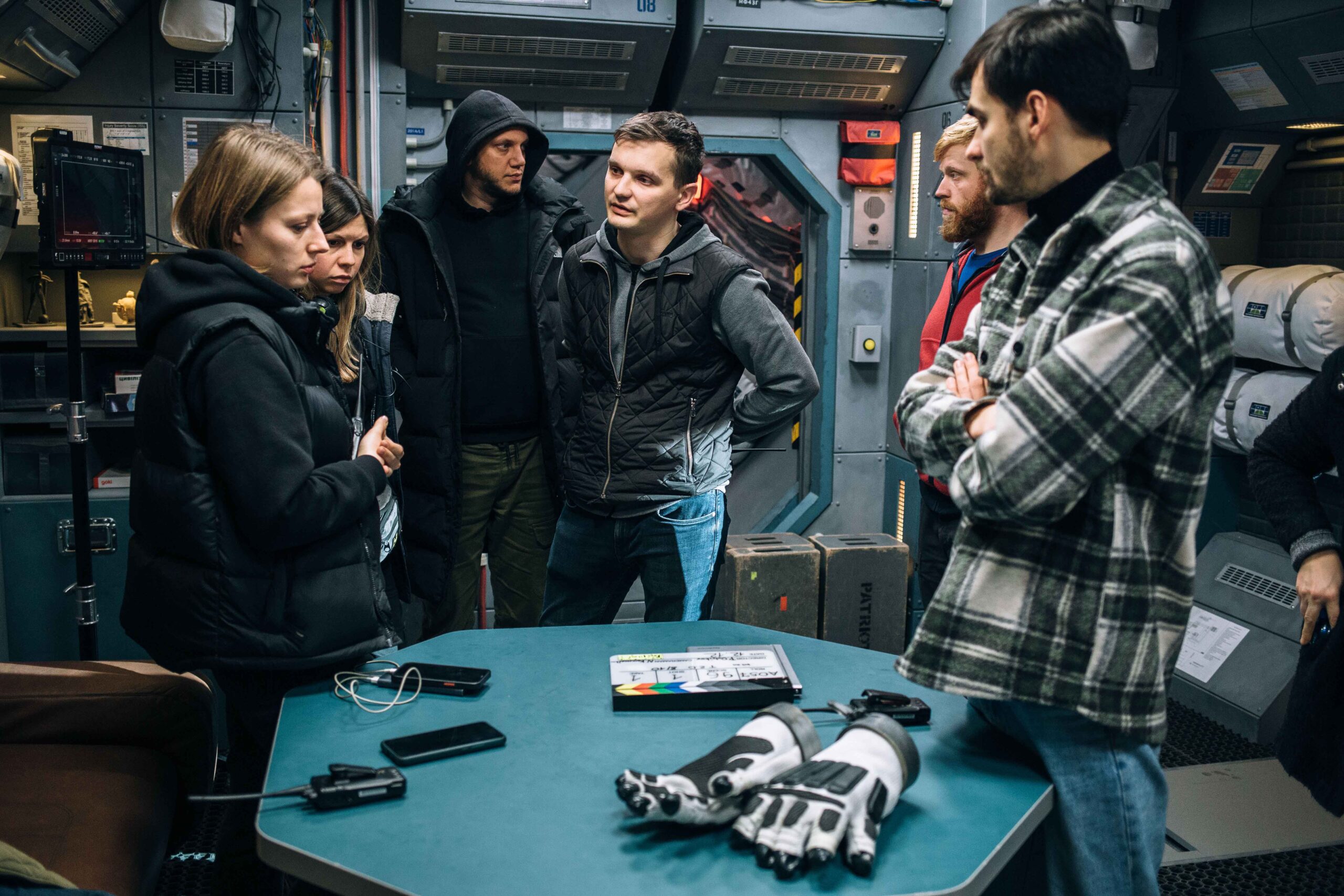 Остріков: Це смішно, але наше кіно зроблено на класичній базі, що не містить у собі нічого супернового. Приміром, ми не використовували ніяких LED-екранів. У нас усе було дуже просто. Ми вручну робили все, що могли, — корабель, якусь обшивку екстер’єрних частин корабля. А коли чогось не могли, то ставили зеленку або синьку і вже потім мучилися з цим. Працювали на Unreal Engine 5. Це спростило роботу, але я не відчув, що нам допоміг у цьому час. Гроші точно допомогли б.