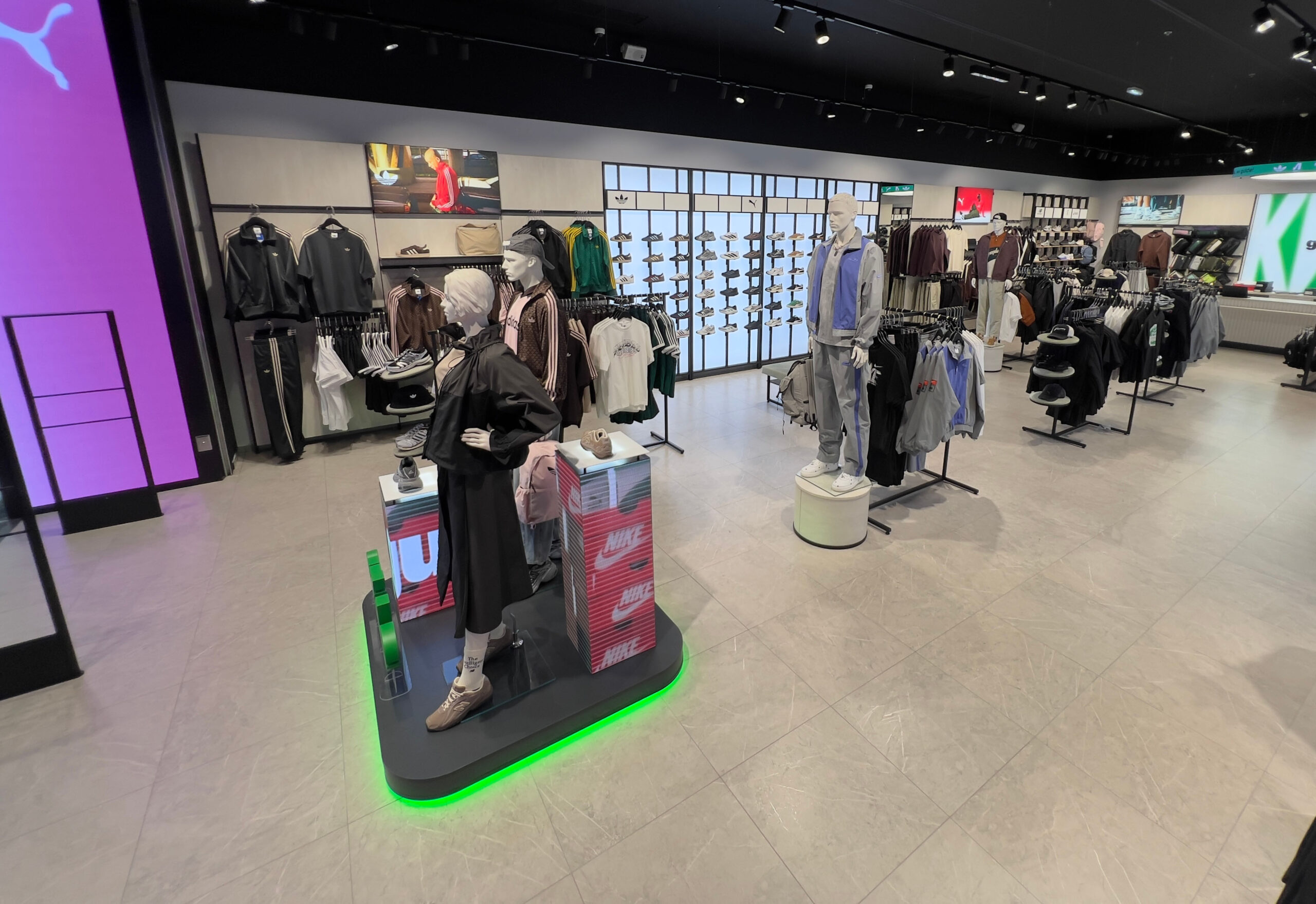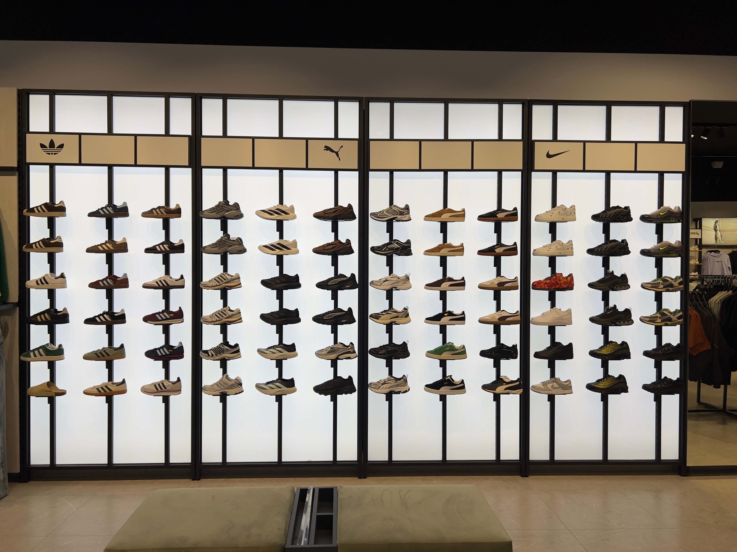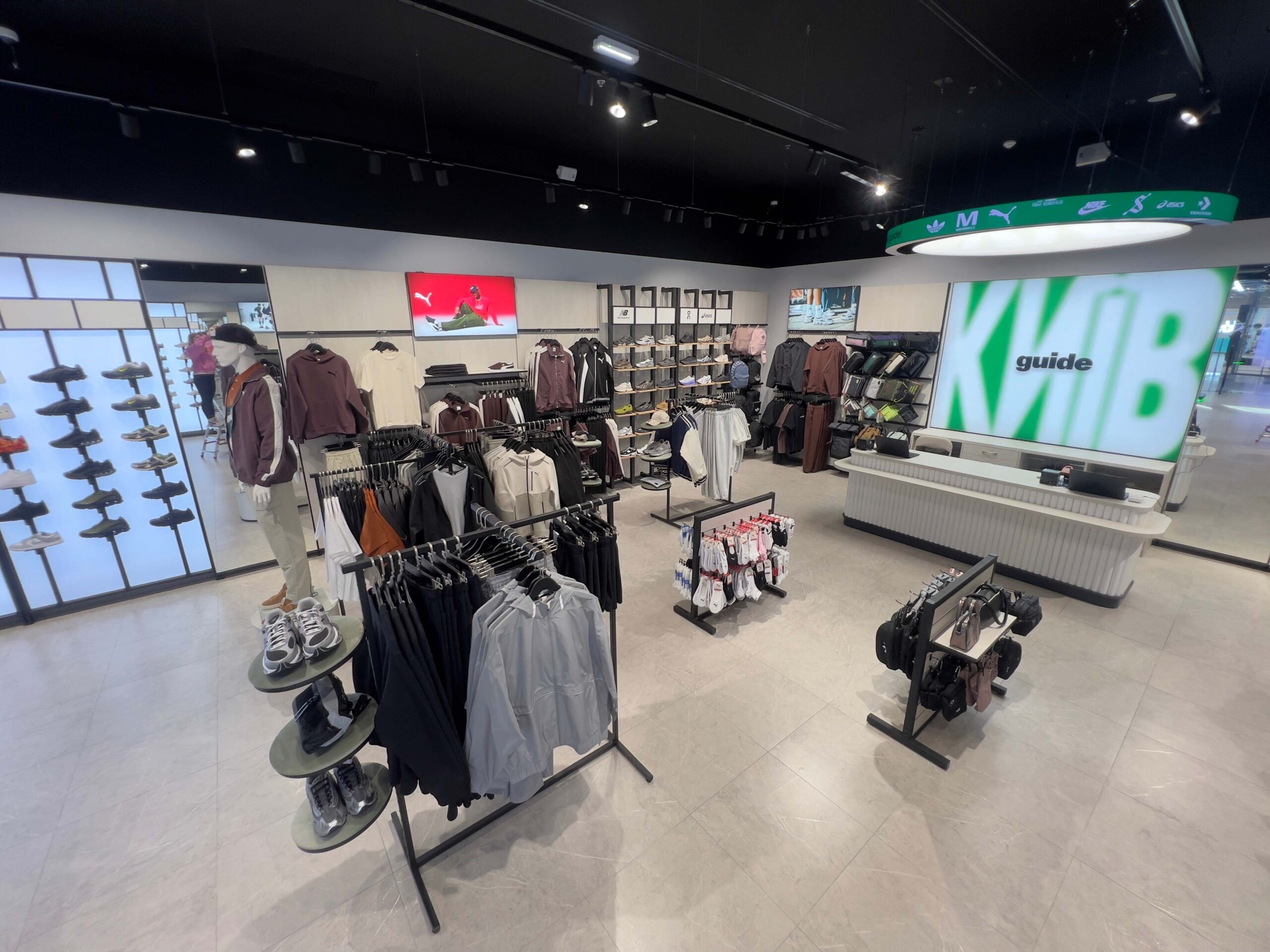 guide представляє бренди в сегментах спортверу та стритверу, серед яких On, Hoka, adidas, PUMA, New Balance, Nike, ASICS, Merrell та інші. У всіх магазинах приблизно на 70–80% схожий асортимент, однак залежно від географії команда експериментує з добором брендів.