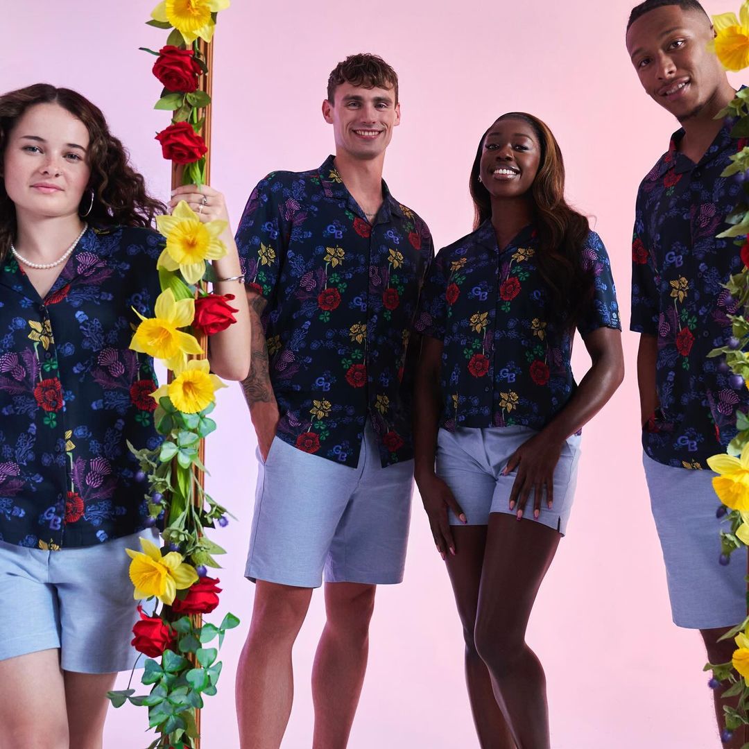 Серед рослин, якими прикрашено майже всі речі, троянда, чортополох, нарцис і трилисник, що «символізують єдність чотирьох націй у складі Великої Британії». Доповнили образ шкарпетками з візерунком, створеними в колаборації з Happy Socks.