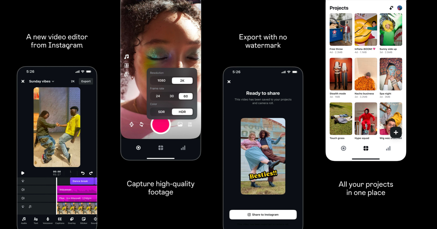 «Edits — це більше, ніж програма для редагування відео; це повний набір творчих інструментів. Ви матимете окрему вкладку для натхнення, ще одну, щоб відстежувати свої ідеї з ранньої стадії, і загалом усі інструменти редагування, на які ви тільки могли очікувати, камеру набагато вищої якості, можливість ділитися чернетками з друзями та іншими користувачами, а також — метрики про ефективність ваших відео», — розповів Моссері.