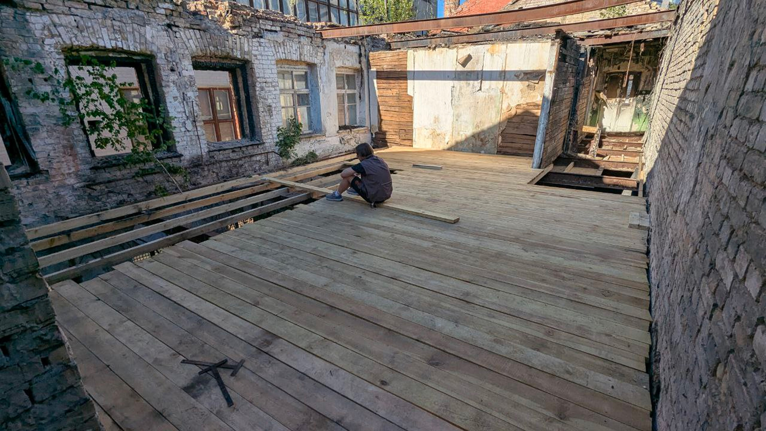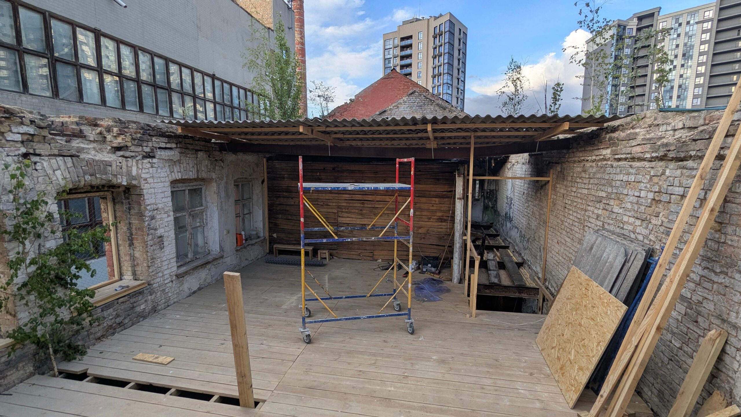 Над ремонтом та облаштуванням майданчика команда працювала протягом півроку. Всі роботи вони реалізовували власними силами: ремонт підлоги, будівництво нових сходів, реставрація стін та вікон.