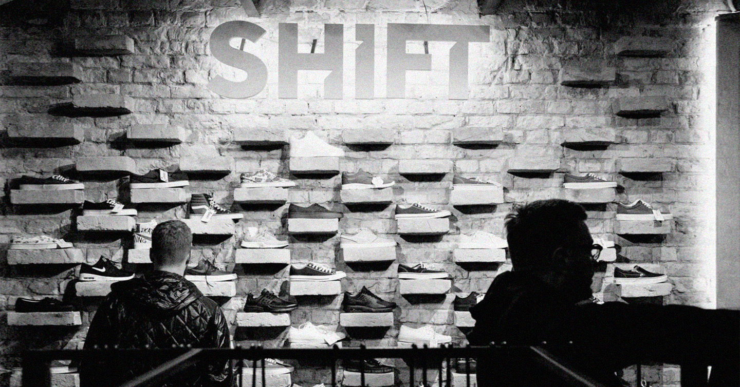 Флагманський бренд магазину — Vans. За словами Євгена, у SHIFT представлено найбільшу колекцію кед в Україні. На їхньому рахунку також є колаборації як із локальними марками, так і зі світовими — американською ’47 та французькою Le Coq Sportif.