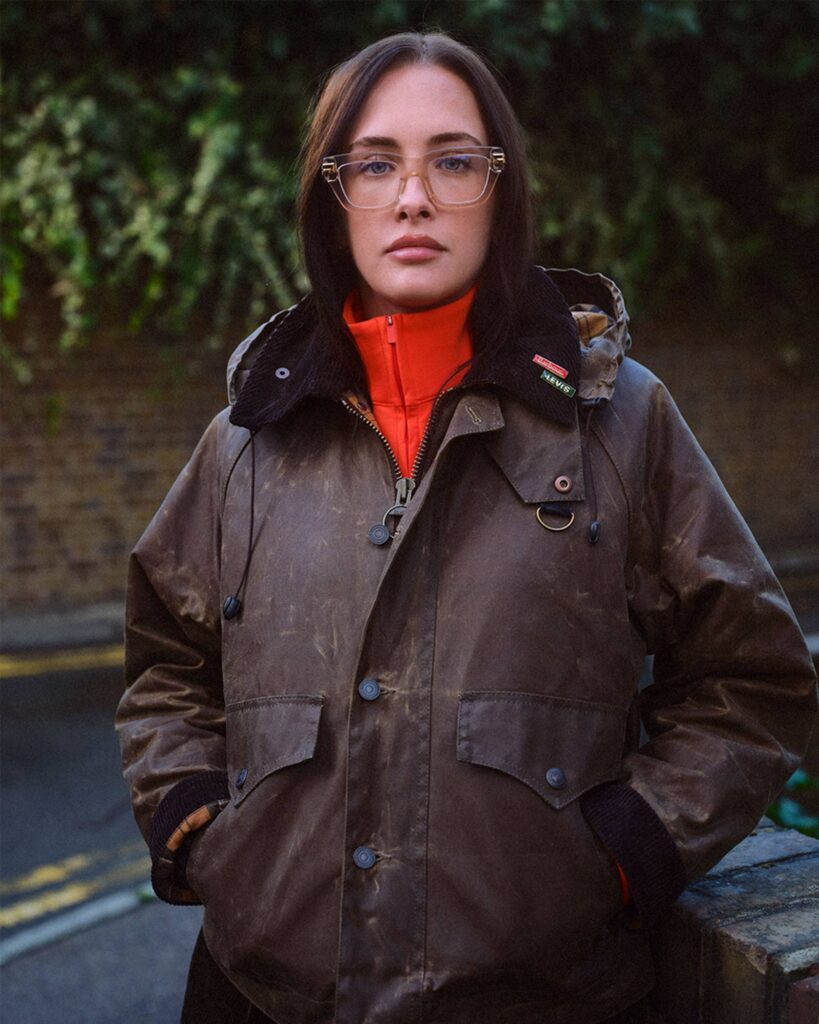 Силует Bedale Barbour представили у двох версіях: з джинси та темно-синьої вощеної бавовни. Куртку оздобили фурнітурою Levi’s, знімним капюшоном, вельветовим комірцем та фірмовим картатим лайнером Barbour.