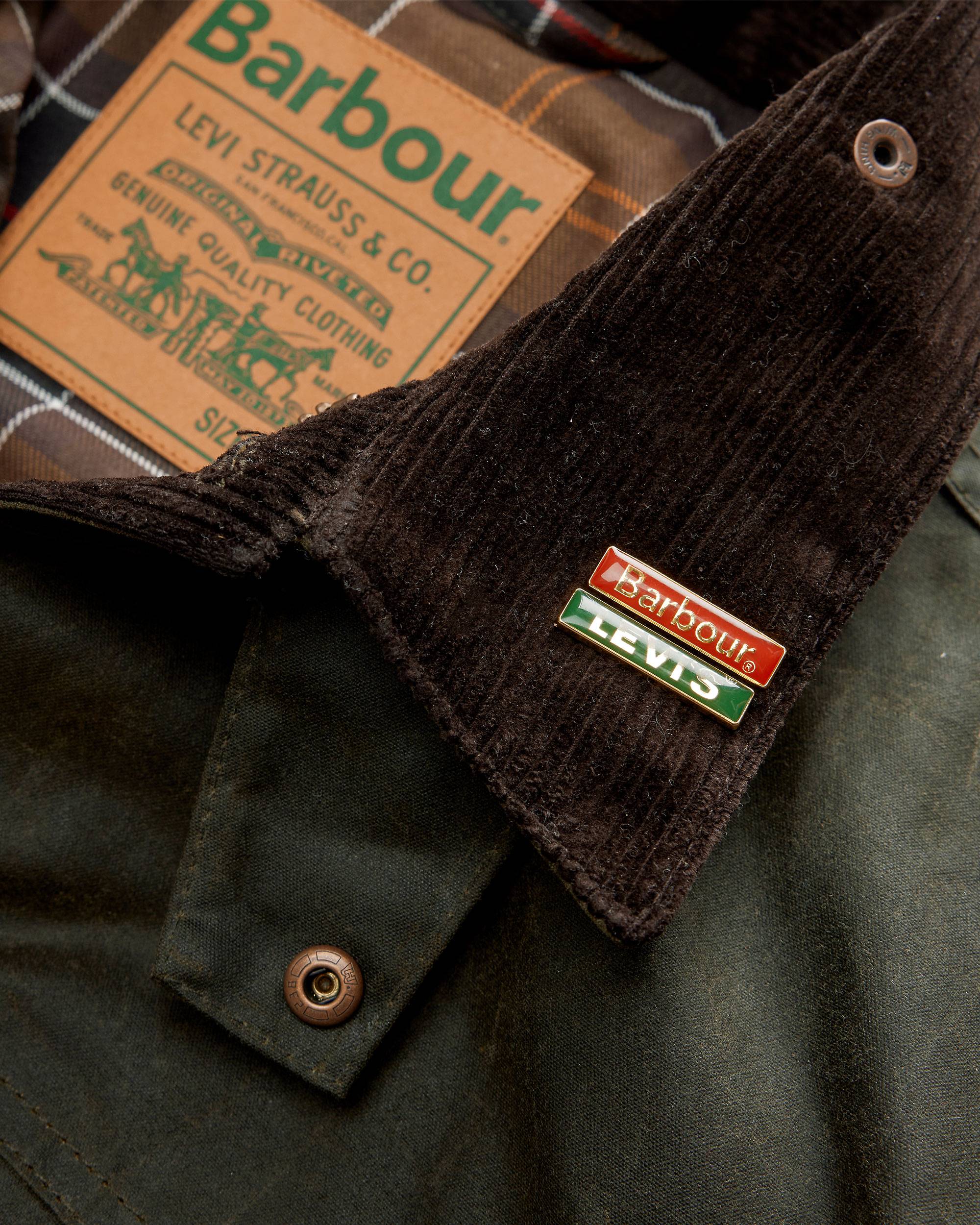 Класична модель Levi’s, Type II, у колекції виконана в фірмовому оливковому кольорі Barbour з вощеної бавовни, a також у блакитному кольорі з джинси. Її доповнили вельветовим комірцем, металевою фурнітурою та картатим лайнером.