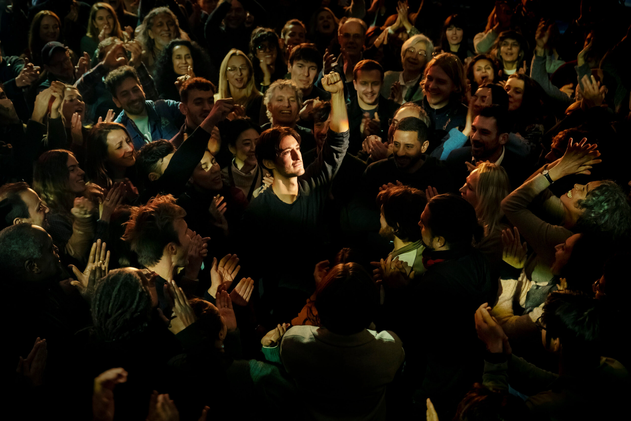 Фільм показує, що спіч коуча працює не через аргументи, а через справжні й інтенсивні емоції. Яне, ви взяли за основну для музичного рішення естетику рейву і використали клубну музику для сцен семінарів. Чому? Ви хотіли показати силу емоцій і колективну ейфорію, яка працює сильніше за логіку?