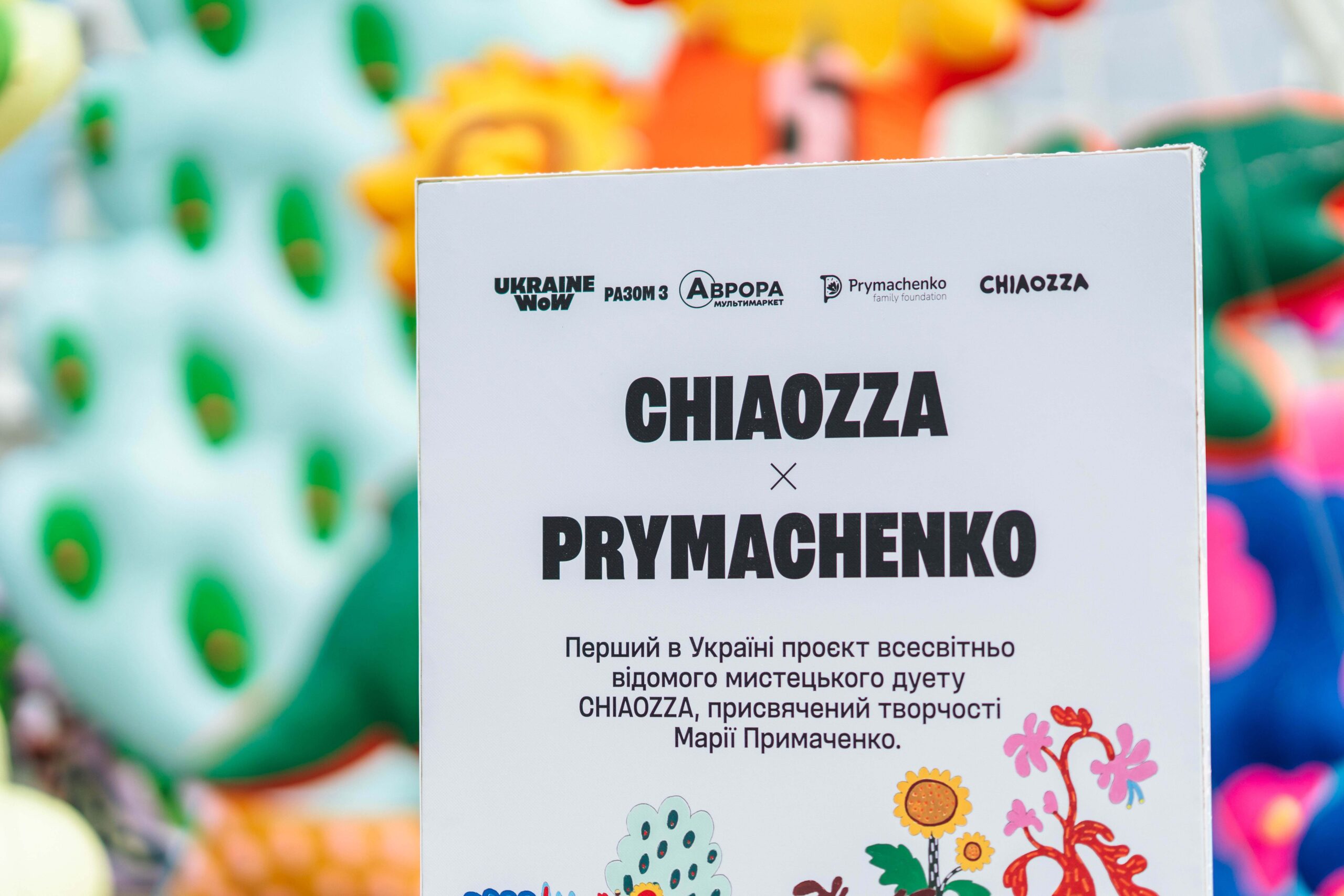 CHIAOZZA створили роботу на запрошення Ukraine WOW і мережі «Аврора» у партнерстві з Prymachenko Family Foundation. Також «Аврора» створила лімітовану серію мерчу: світильники, футболки, шопери, подушки-обіймашки, блокноти, чашки, стікерпаки й тату-сети. Весь прибуток від продажу передадутьй на підтримку українських музеїв. Мерч представлять у флагманському магазині «Аврора» на Контрактовій площі та на виставці Ukraine WOW.