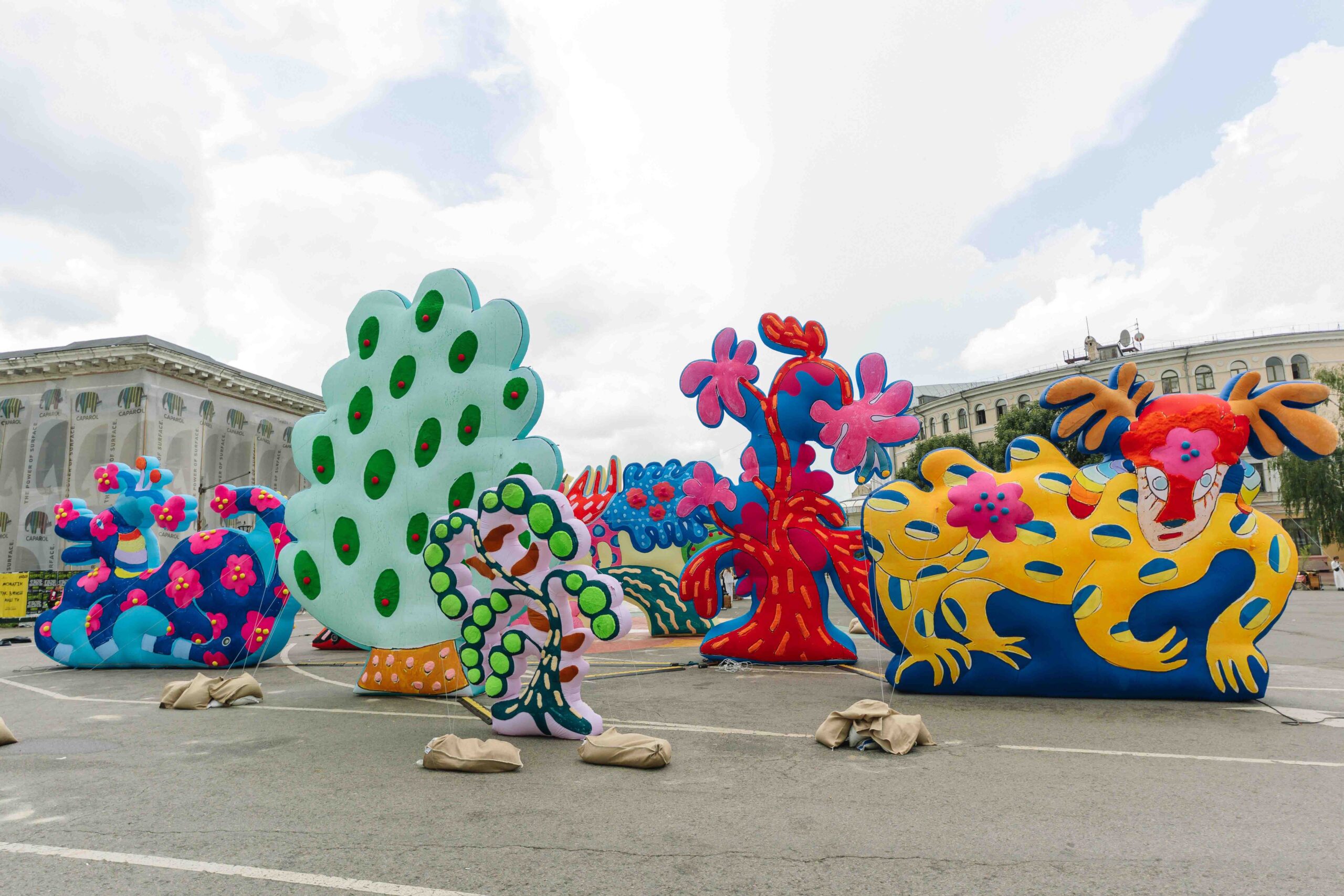 Нью-йоркський дует художників Террі Чао та Адама Фреззи ака CHIAOZZA створили інсталяцію, натхненну роботами Марії Примаченко. Сім надувних скульптур висотою від 3 до 7 метрів, що переосмислюють відомі образи з картин Примаченко — червону квітку, горох, дерево, сонях, птаха, синього звіра й жовтого звіра — встановили на Контрактовій площі в Києві