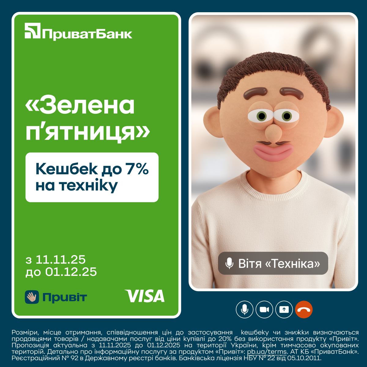 «ПриватБанк» розпочинає сезон розпродажів новою ініціативою «Зелена п’ятниця». Вона триватиме з 11 листопада до 1 грудня та дасть змогу купувати товари в Україні та за кордоном з особливими умовами програми лояльності «Приват24», а саме зі спеціальними кешбеками та знижками від магазинів-партнерів