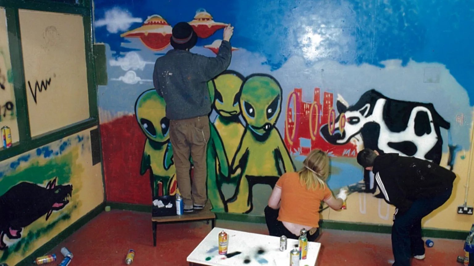 Того ж року Banksy створив один з перших визначних для нього муралів — Mild Mild West — із зображенням плюшевого ведмедика, який кидає коктейль Молотова у трьох спецпризначенців. Він розмістився у бристольському кварталі Стокс-Крофт.
