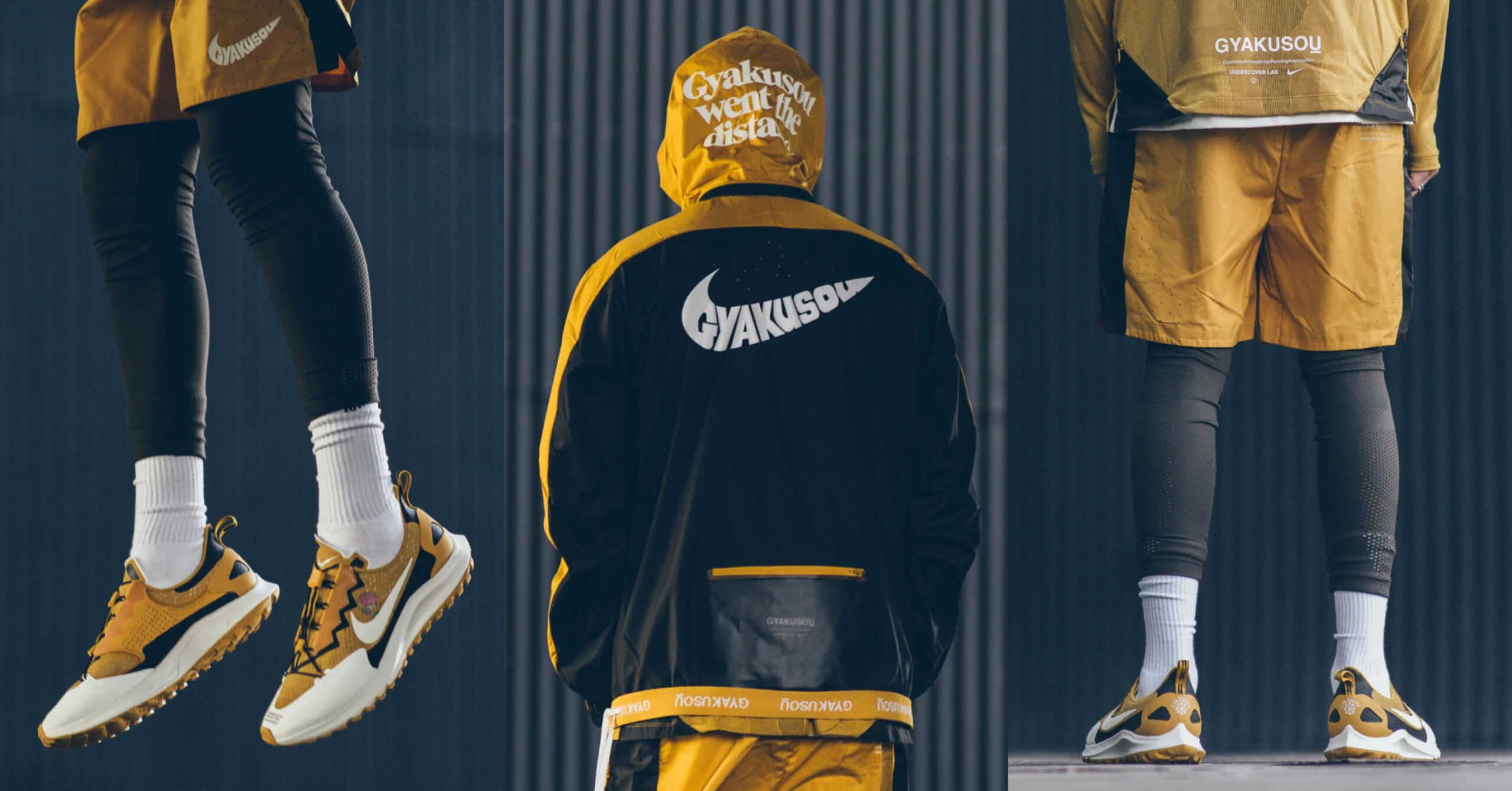 1.Назва GYAKUSOU перекладається з японської як «біг проти течії», що відображає цей настрій як у фізичному, так і культурному контексті. Вона заснована на особистому досвіді Джуна Такахаші як бігуна й переосмислює біг не у змагальному контексті, а як особисту, майже «медитативну практику». А ще частково відсилає до захоплення дизайнера панк-культурою.