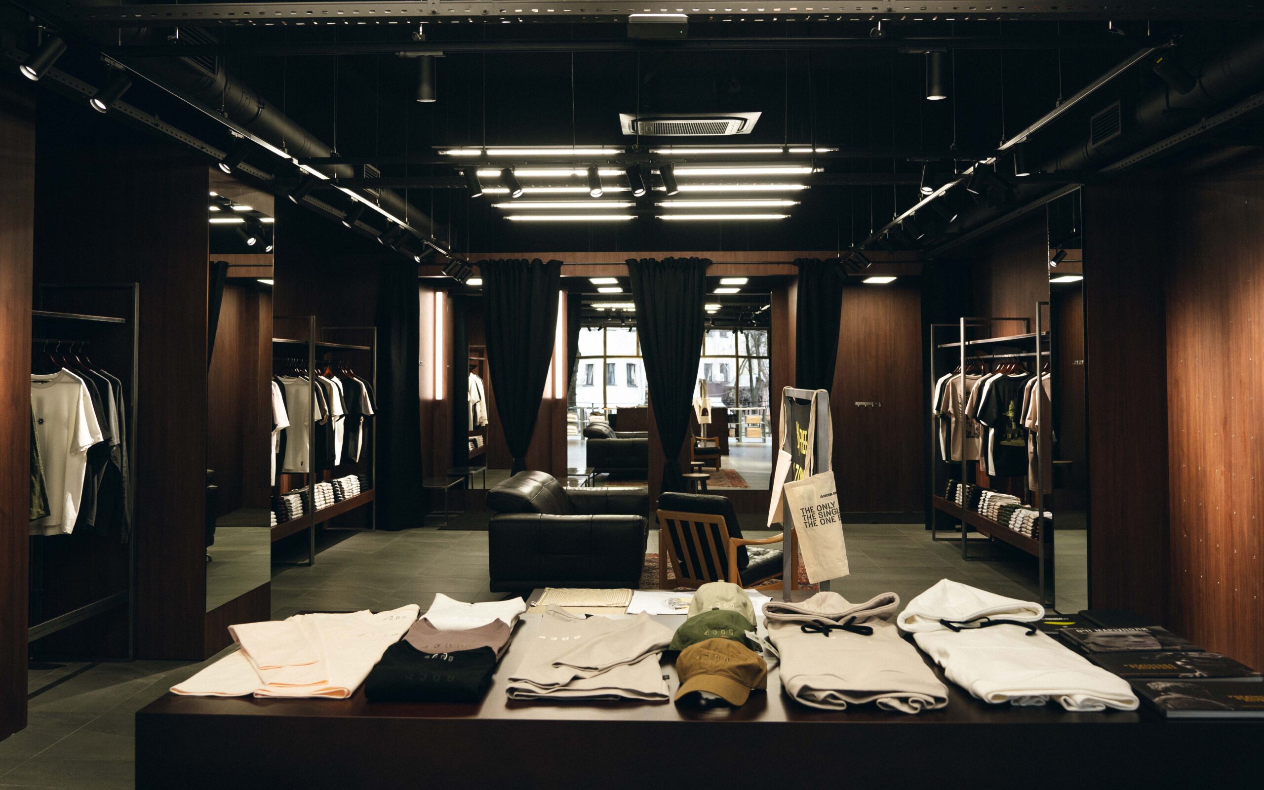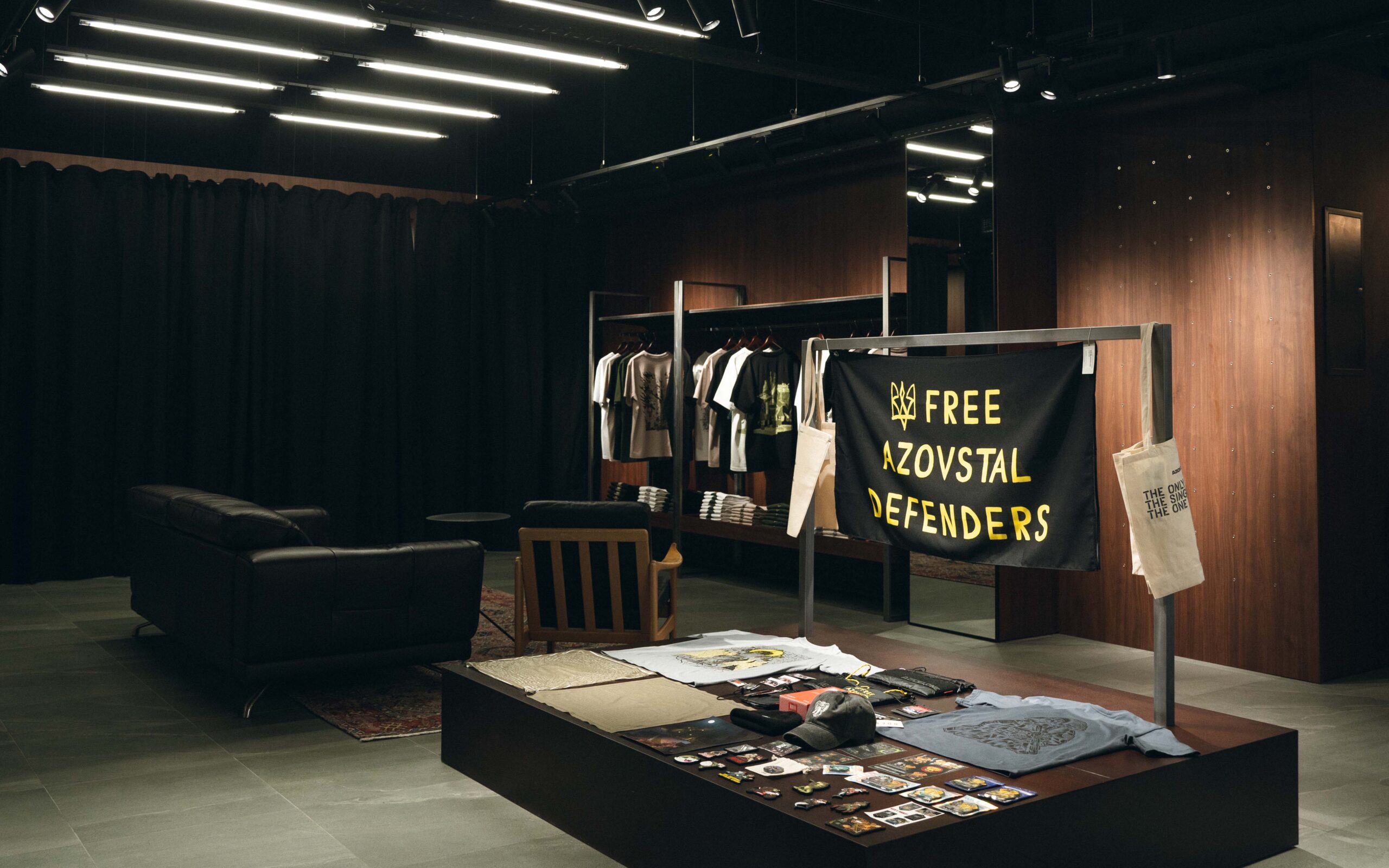 У львівському просторі представлено бренд 4308 і мерч Free Azovstal Defenders. Також окремо працює шоурум RIOTDIVISION — його асортимент частково відрізнятиметься від представленого в Києві. Теквер-бренд також планує додавати локальні позиції: тематичні принти та спеціальні дропи, повʼязані з містом, а також колаборації з локальними героями.