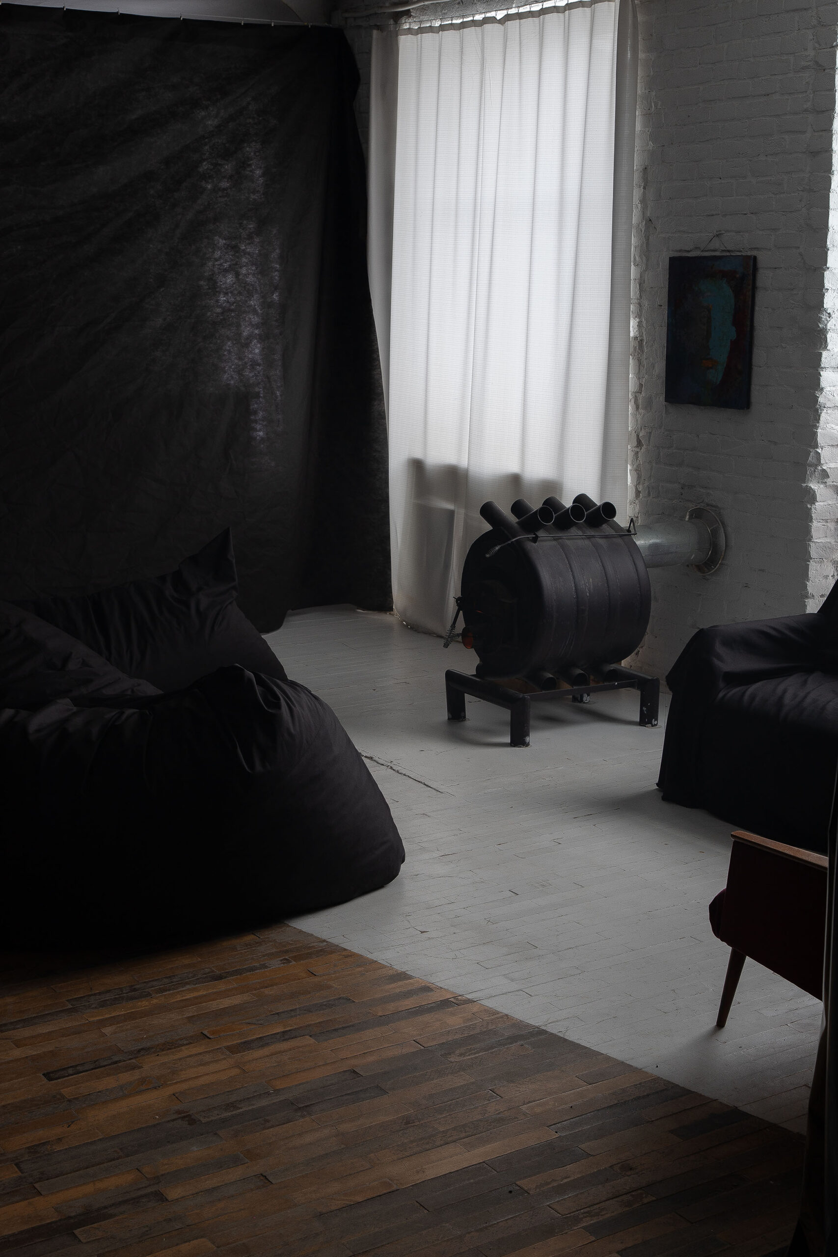 «Штора створила приємну мʼяку форму, а завдяки потужній витяжці вдалося закрити функцію. За зоною для куріння утворився камерний простір, у якому можна лежачи слухати музику. Ми виготовили два 10-метрових м’яких хробака, яких можна легко переставляти та змінювати форму», — додають Armz Studio.