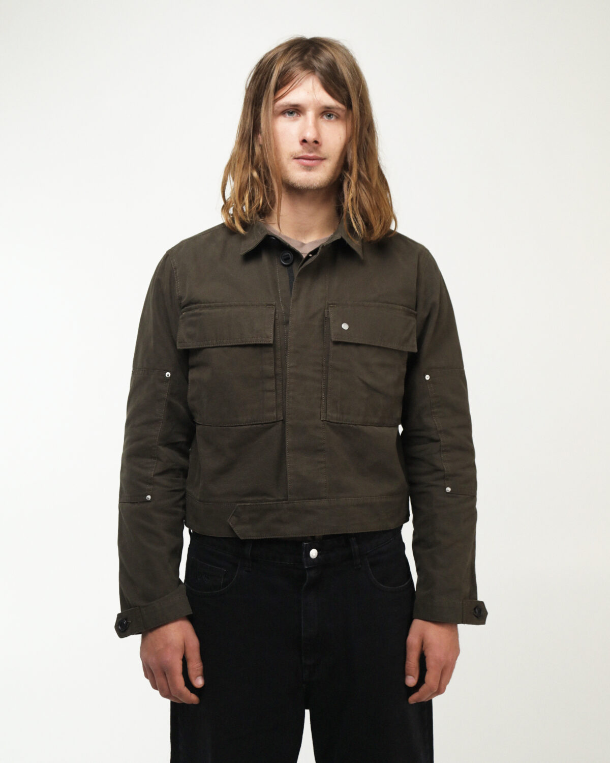 Частиною колекції також стала колаборація з київським дизайнером Віктором Дікасовим: він створив робочі куртки з накладними кишенями у двох кольорах, чорному та оливковому.