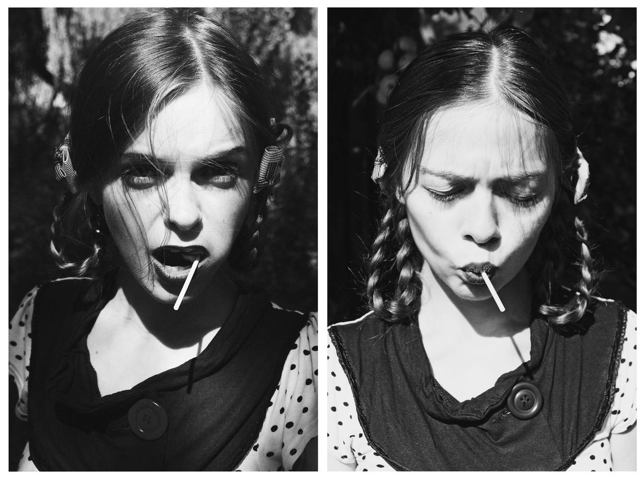 Я знімала ці серії паралельно протягом 2010-х років. Вони також пов’язані дружбою — моя найкраща подруга і модель Ярослава Дюна стала героїнею обох серій. Різниця між ними в тому, що «Преті гетто» — це така одна величезна збірка фотосесій, що накопичувались роками, поєднуючись естетикою, а «38» — невеличка концептуальна фотосерія виключно з диптихів. На них ми з Ясьою міняємось ролями, на лівих знімках — оригінальне фото, зроблене мною й датоване 2010 роком, а на правих — репліка, де повторюється локація, одяг та ракурс, але в кадрі вже я, а Ярослава тримає камеру.