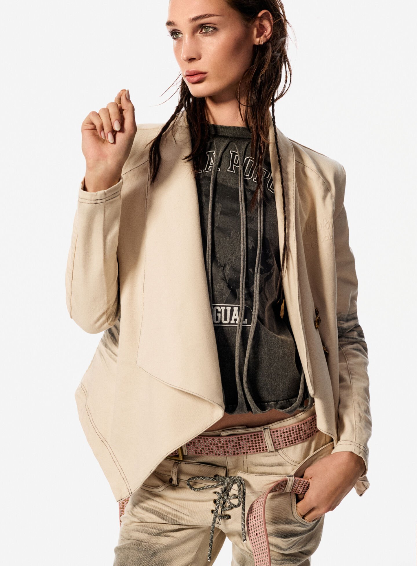 Українська дизайнерка та засновниця однойменного бренду Маша Попова створила кансульну колекцію для іспанського бренду Desigual. У ній архівні силуети марки переосмислили через роботу дизайнерки з робітничим денімом