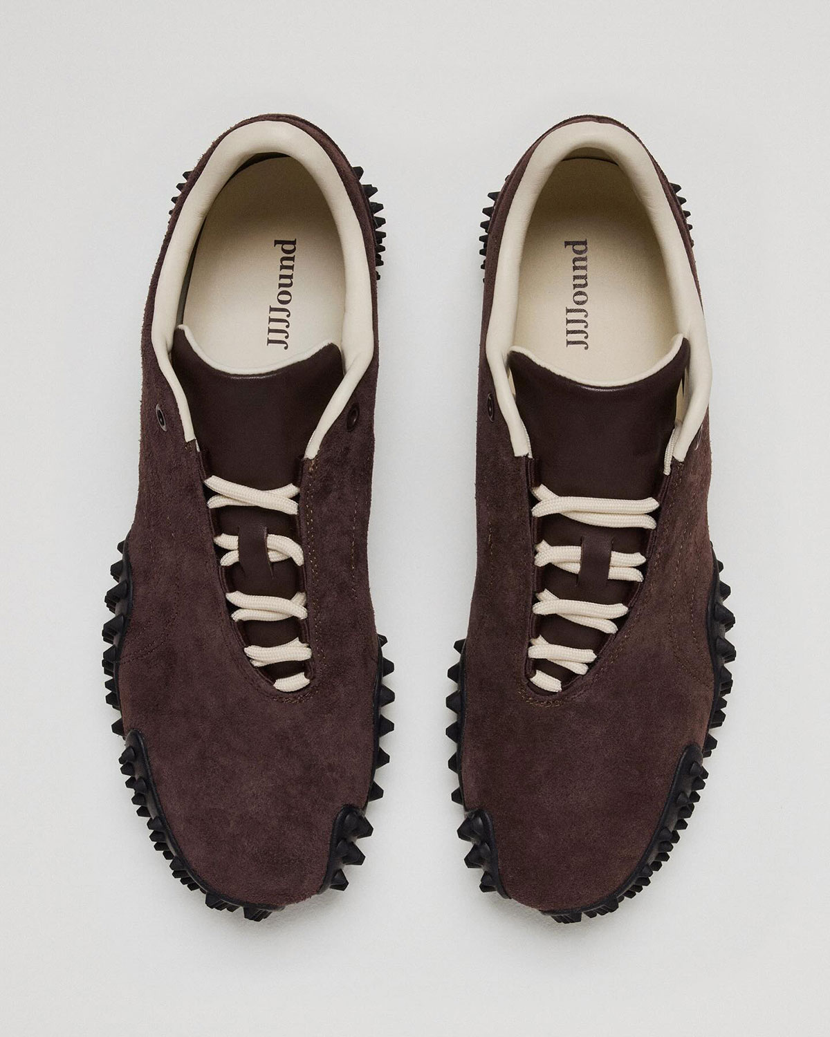 Кросівки також отримали масивну круглу шнурівку у кремовому кольорі та устілку з брендингом JJJJound. Модель JJJJound x Puma Mostro представили у коричневому та темно-синьому кольорах.
