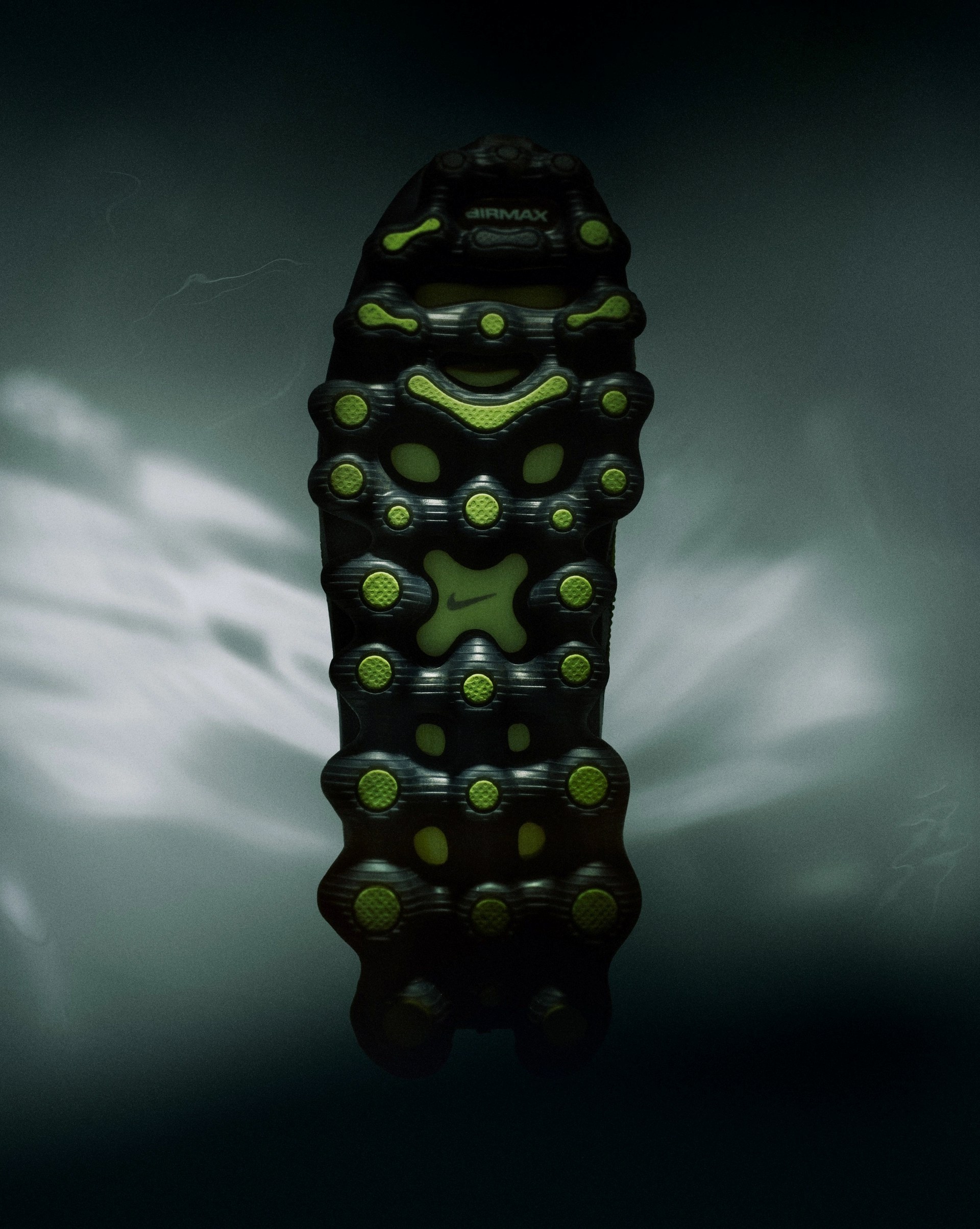 Конструкція силуету ґрунтується на «чотирьох десятиліттях знань та спадку» Air Max. Повітряний балон охоплює усю підошву кросівки та торкається землі лише в окремих точках.