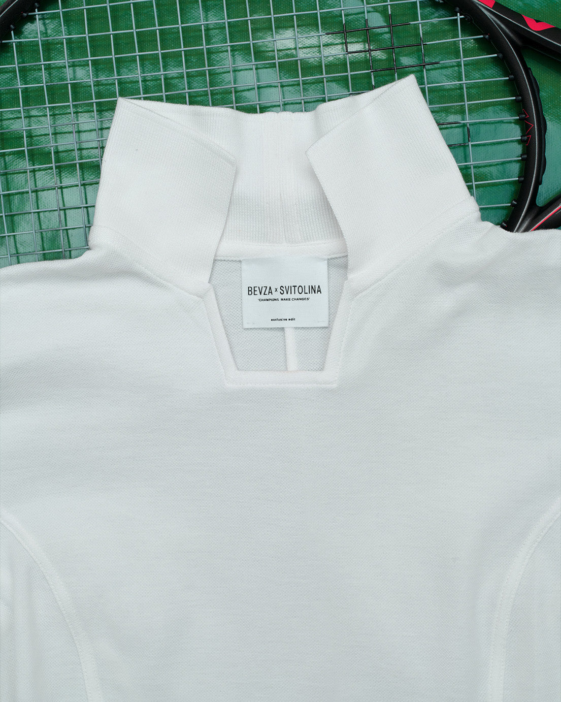 Всі речі виконали у білому кольорі — це відсилання до виключно білого офіційного дрес-коду Вімблдону. У кампейні колаборації знялася сама Еліна Світоліна.