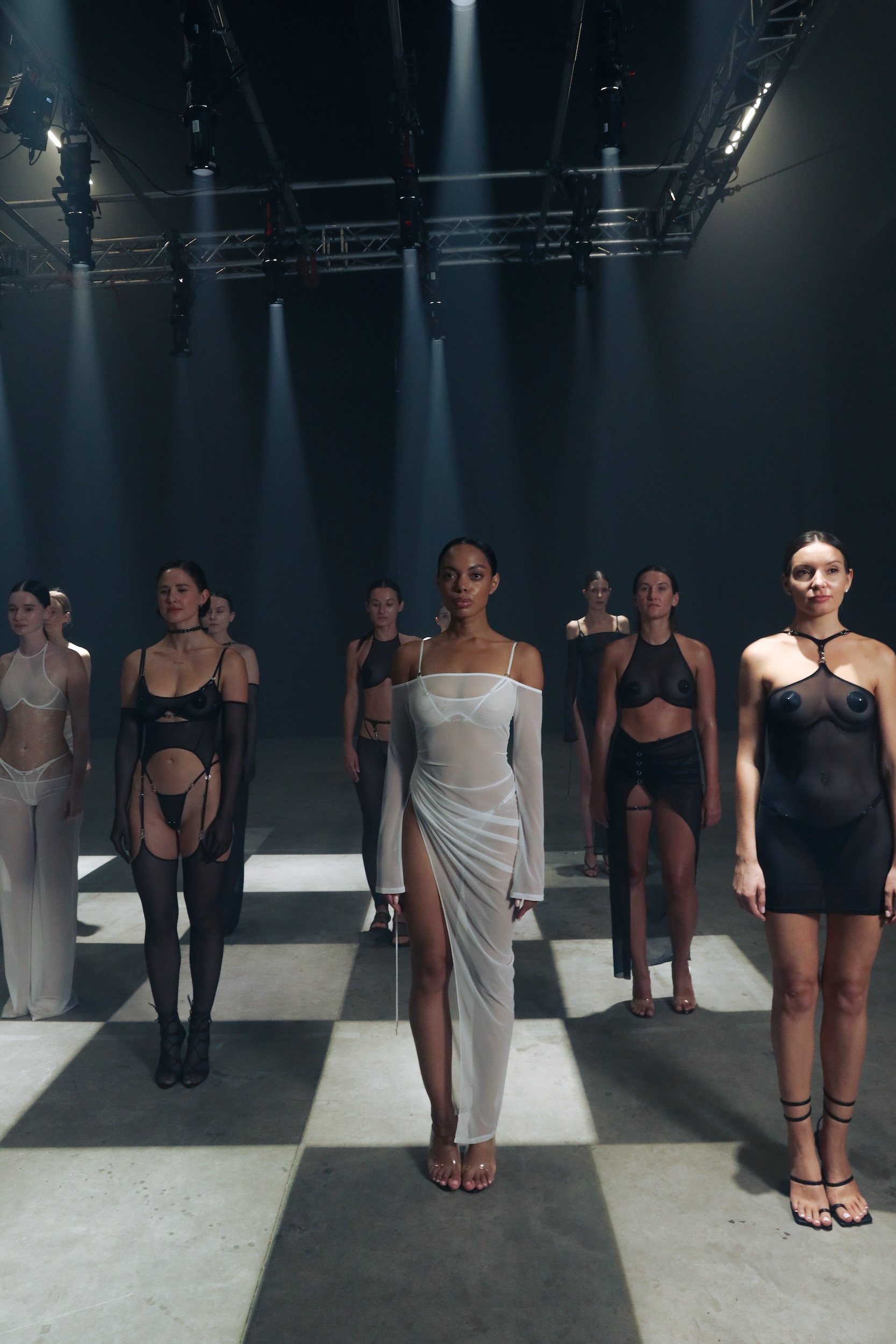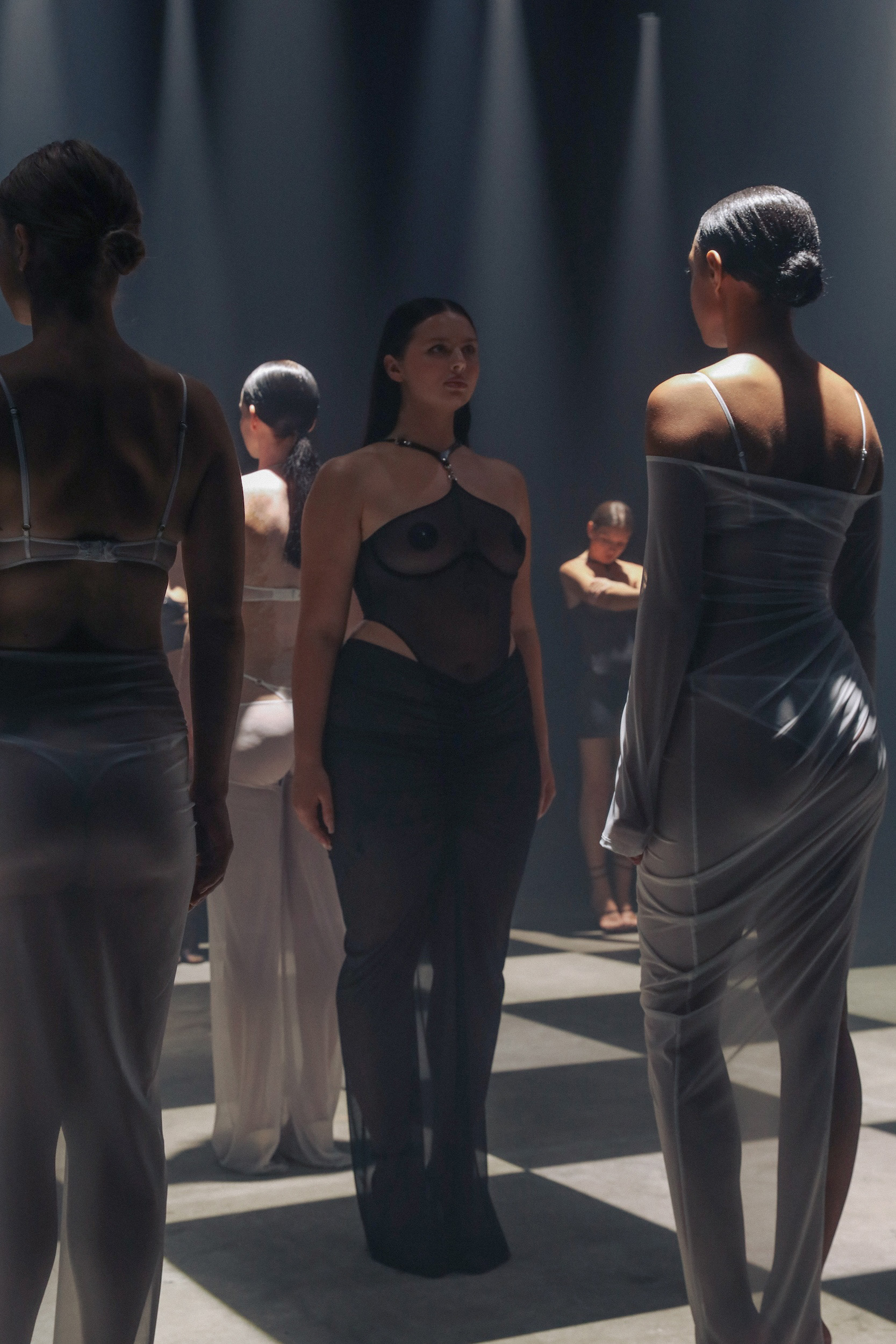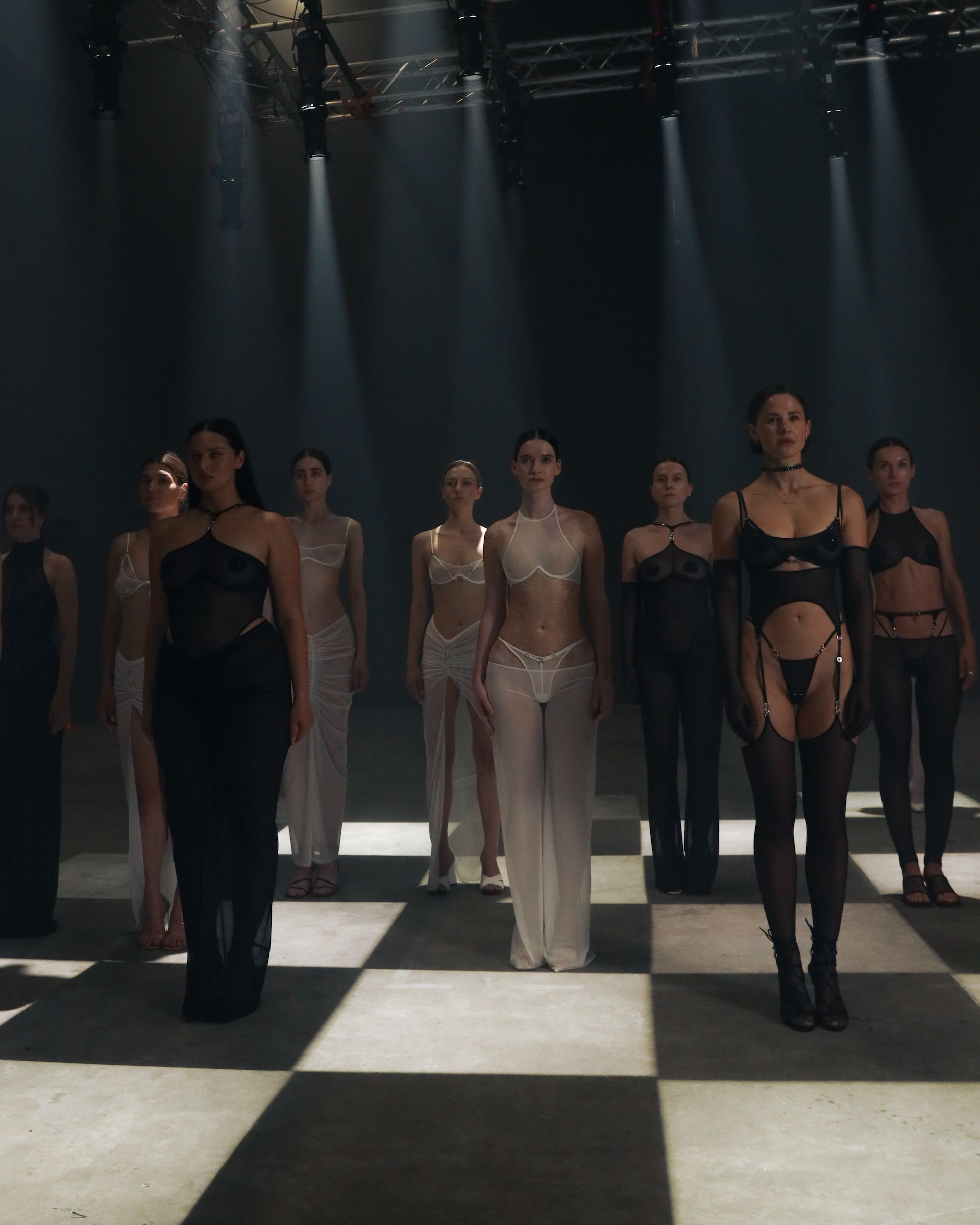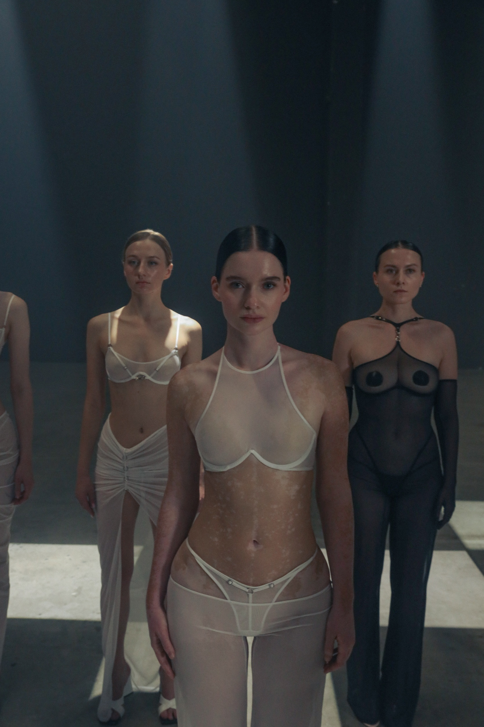 У Anoeses розповідають, що в новому дропі вирішили поекспериментували з формами та стилізацією еластичної сітки, «не зраджуючи ДНК бренду», а також використовували техніки драпування.