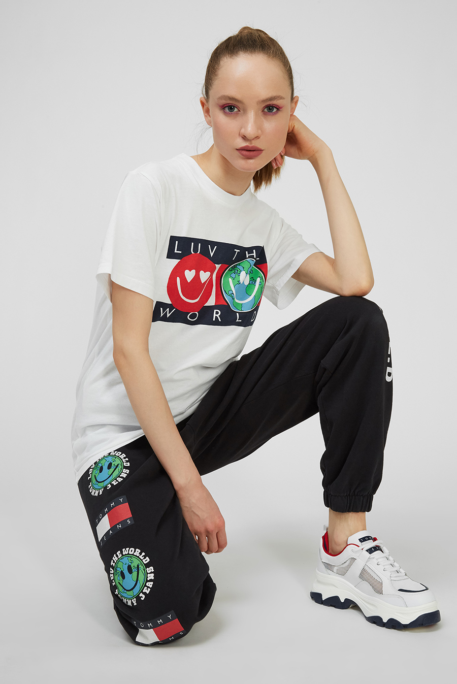 По словам Tommy Jeans, для производства использовали 100% переработанный хлопок, а для печати принтов — экологически чистые составы, без добавления химикатов и пластика.
